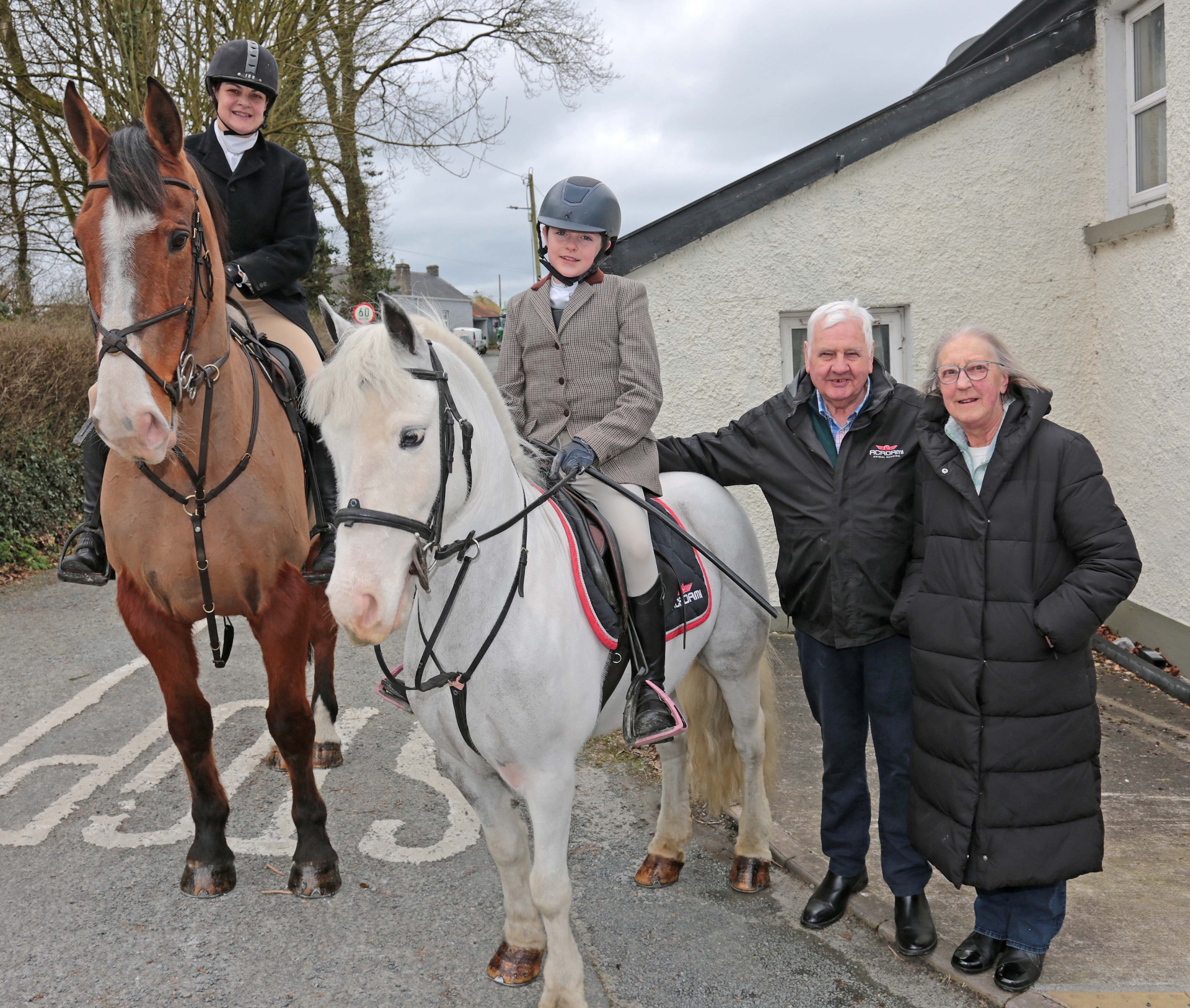 Caption: Edel, Ciara and Joe Cadam with Henry and Blue, along with Frances Forster at the Longford Harriers Ballinalee family run on Sunday afternoon, March 8 Picture: Shelley Corcoran