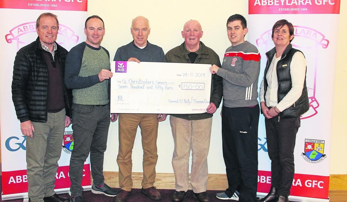 Abbeylara GAA had the pleasure of presenting a cheque for €750 to St Christopher's services from their recent Lipsync Battles fundraiser.
