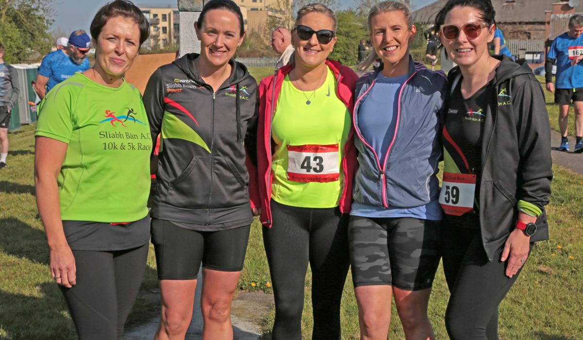 Angela Power, Cora Grover, Niki Craig, Ailish Healy and Lorraine Collins pictured at the Royal Canal Run Longford 2022 on Saturday last