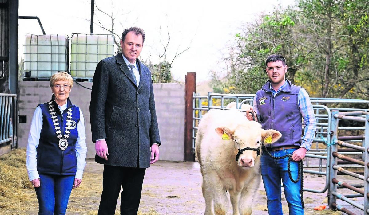 Left: Catherine Gallagher (National President of the ISA), Minister McConalogue and David Henry, a pedigree Charolais breeder and suckler farmer from Co Donegal