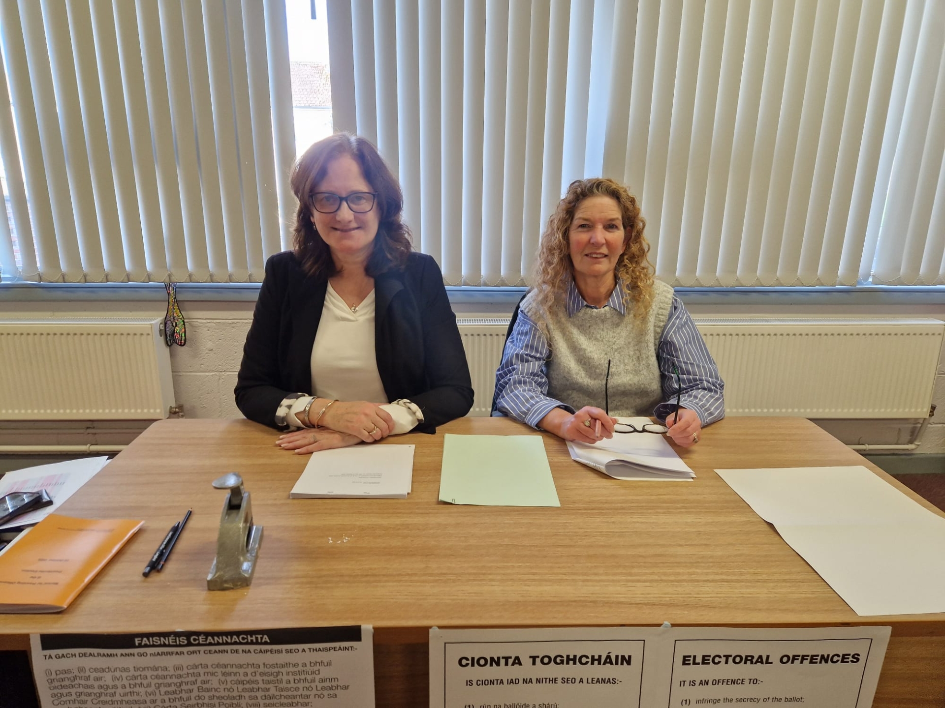 At the second booth in the school, clerks Martina Kelly and Margaret Mulligan (pictured) also calculated a percentage turn out of 10%.