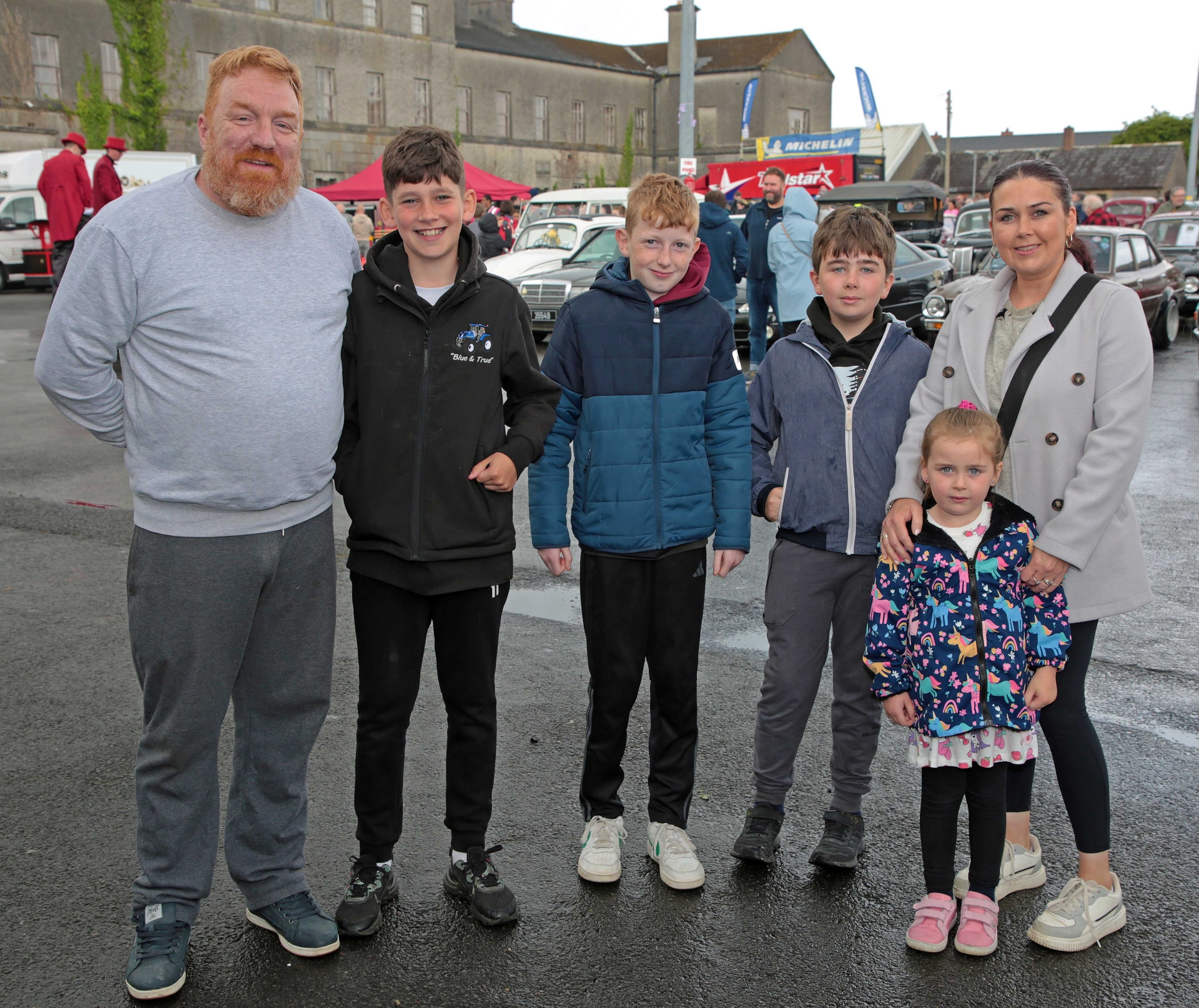 Caption:Simon, Geraldine, Rhea and Rian Byrne, Callum Murphy and Cian Walsh were among the large crowd that flocked to Connolly Barracks on Sunday for the Longford Vintage Club 20th Anniversary show