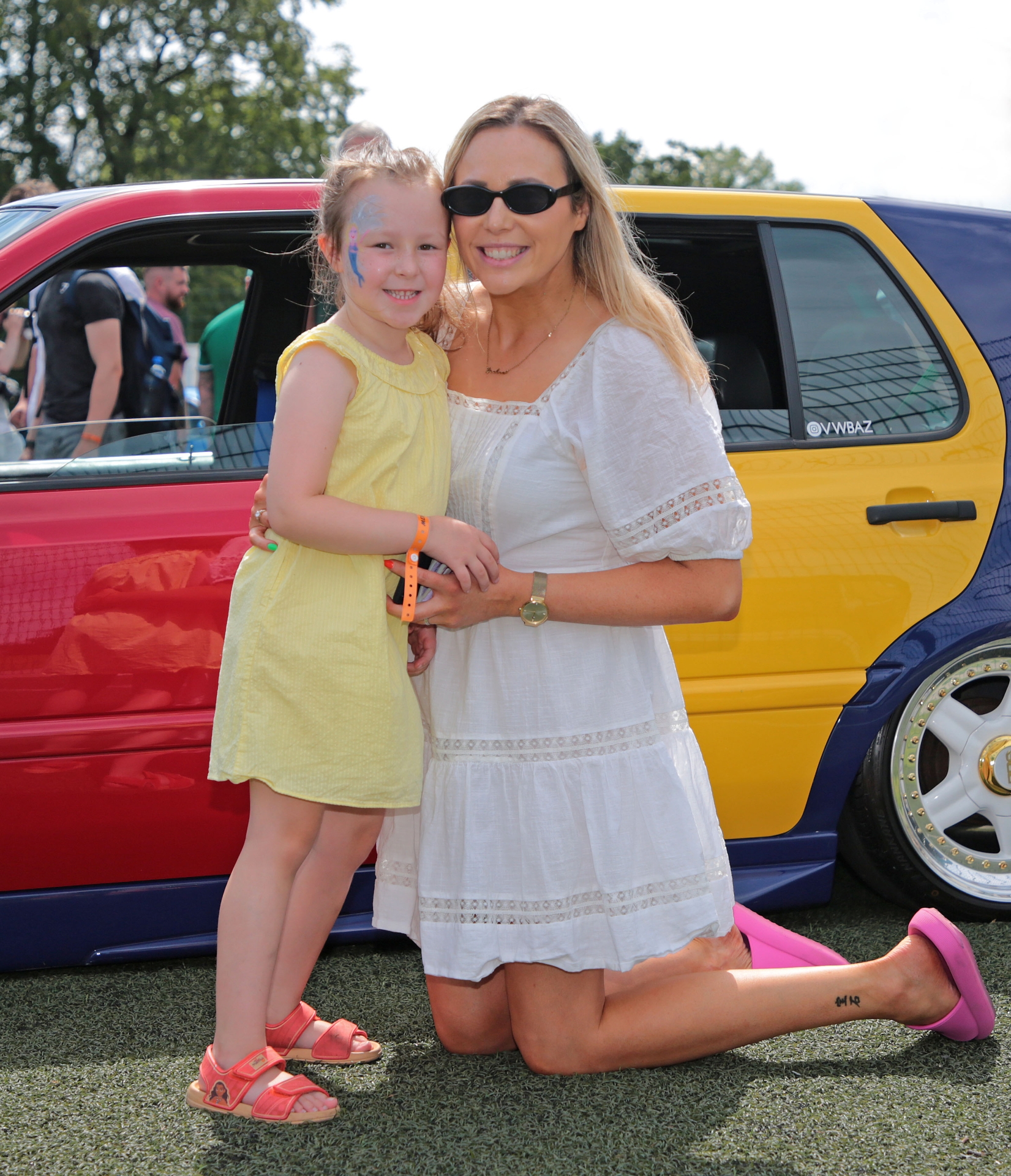 Caption: Gemma and Eva Dempsey beside a modified vehicle