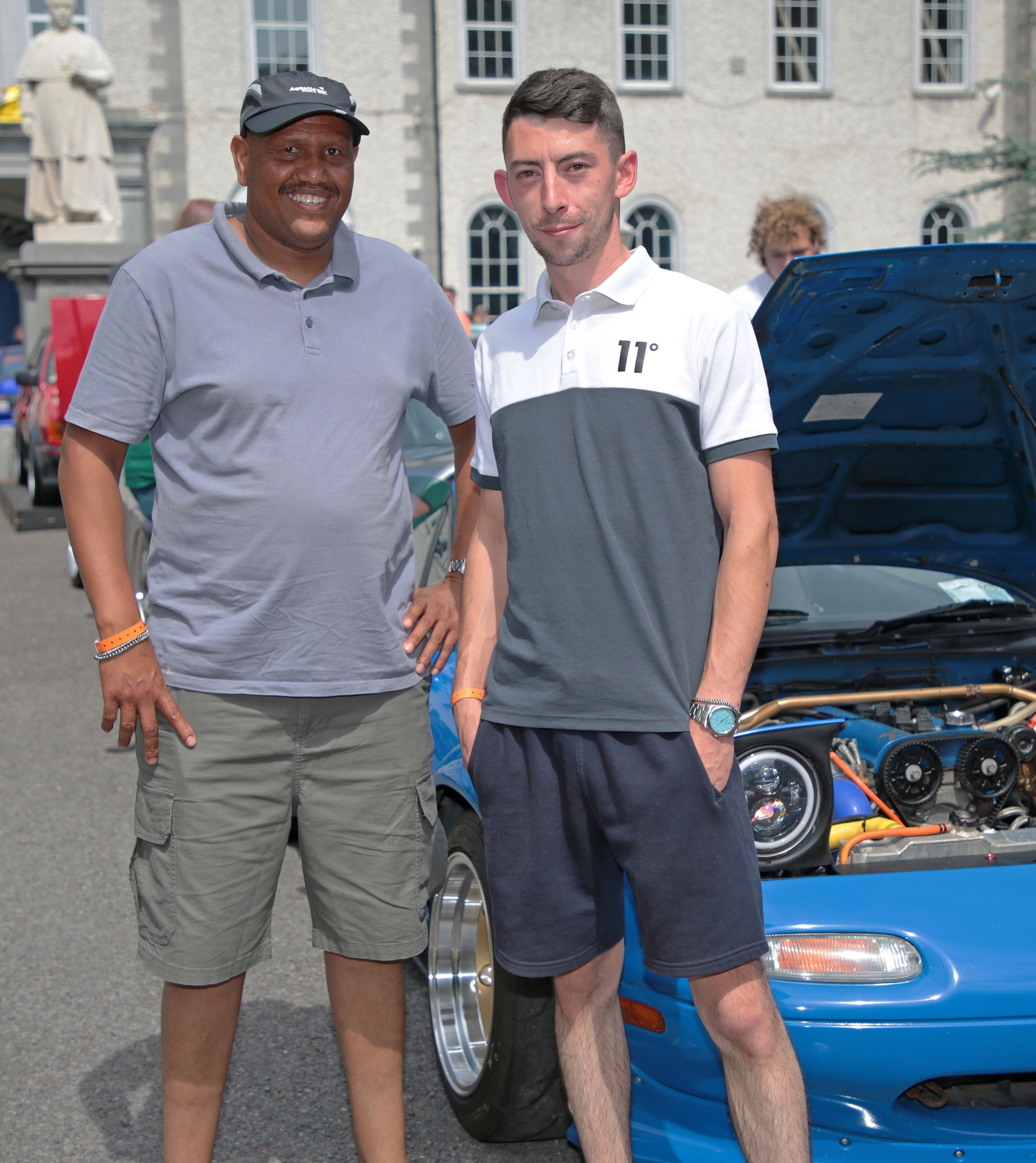 Caption: William McKensie and Cory Brough beside one of the many cars on display at the Old School New School motor show