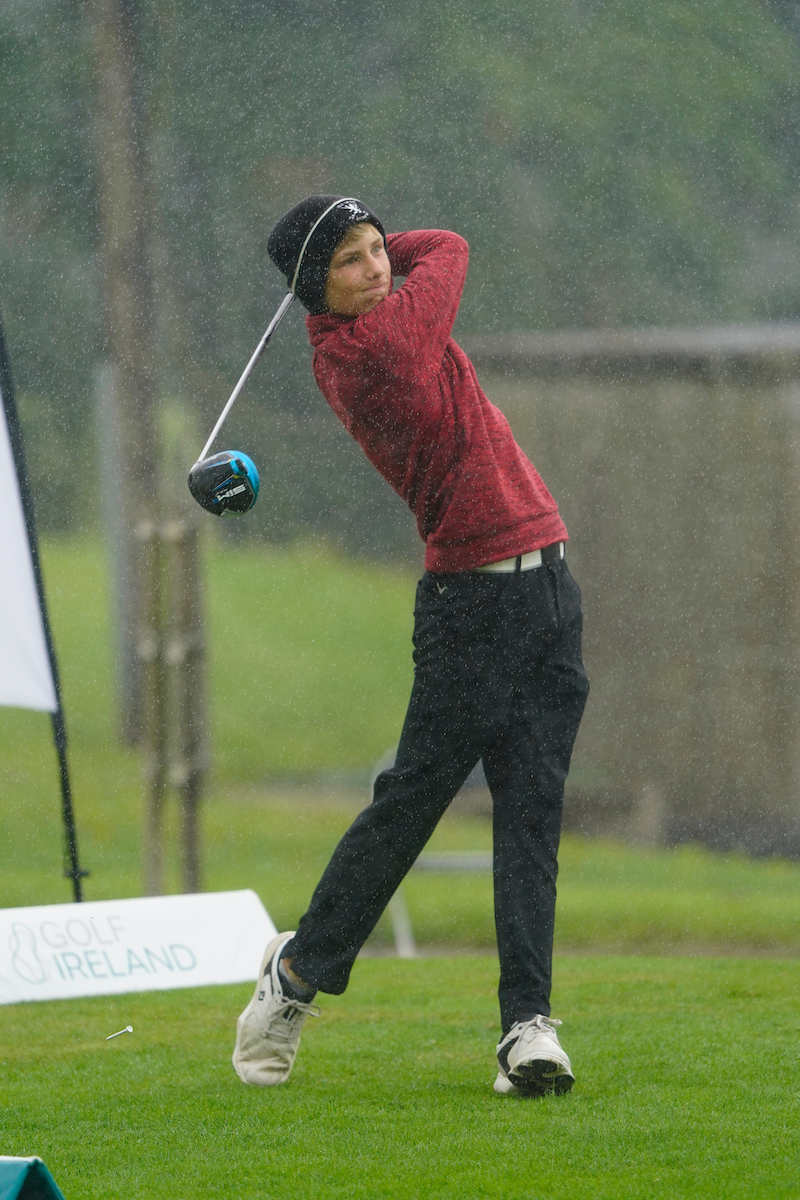 Caption: Winner Sean Cooper (Enniscorthy) on the 1st tee during the final round of the Irish U14 Boys' Amateur Open at County Longford Golf Club Picture: Fran Caffrey / Golffile.ie