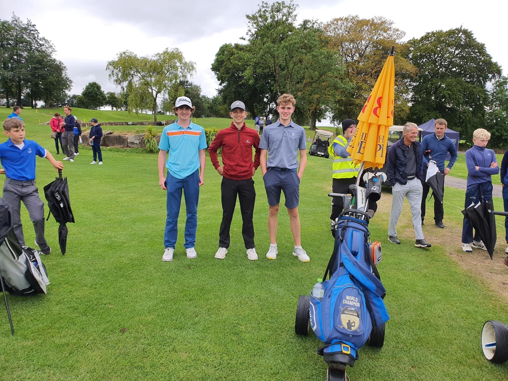 Caption: Belvoir Park’s Evan Hogg, Enniscorthy's Sean Cooper (who finished as the winner) and Fota Island’s John Doyle pictured before their three-hole play-off at the Irish U14 Boys Amateur Open at County Longford Golf Club