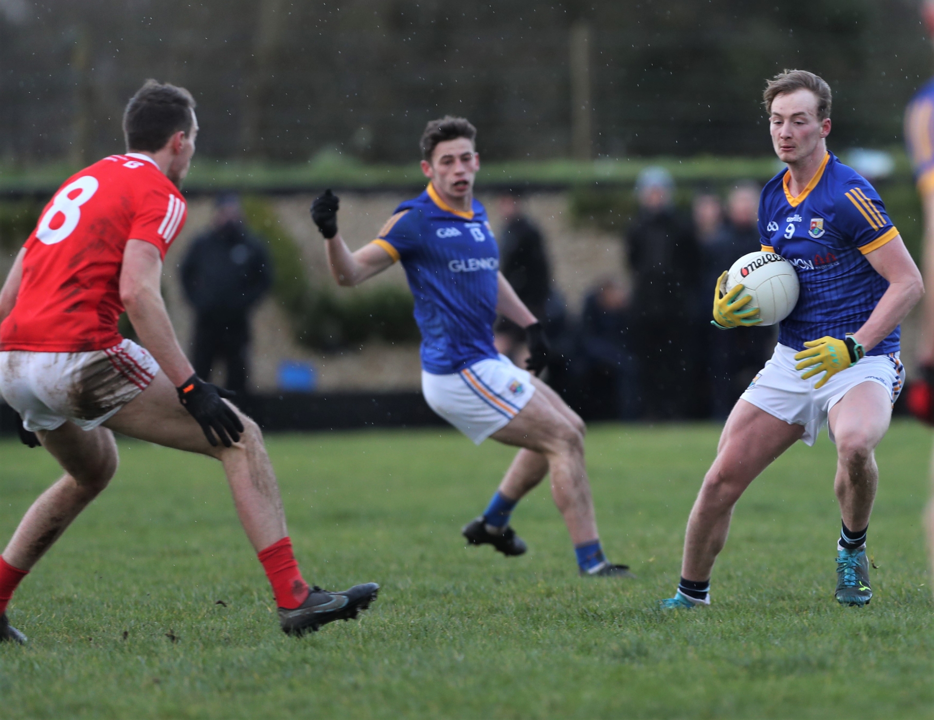 Longford midfielder Tadhg McNevin holds onto possession against Louth in last Saturday's O'Byrne Cup Round 1 clash at Clonbonny Picture: Syl Healy