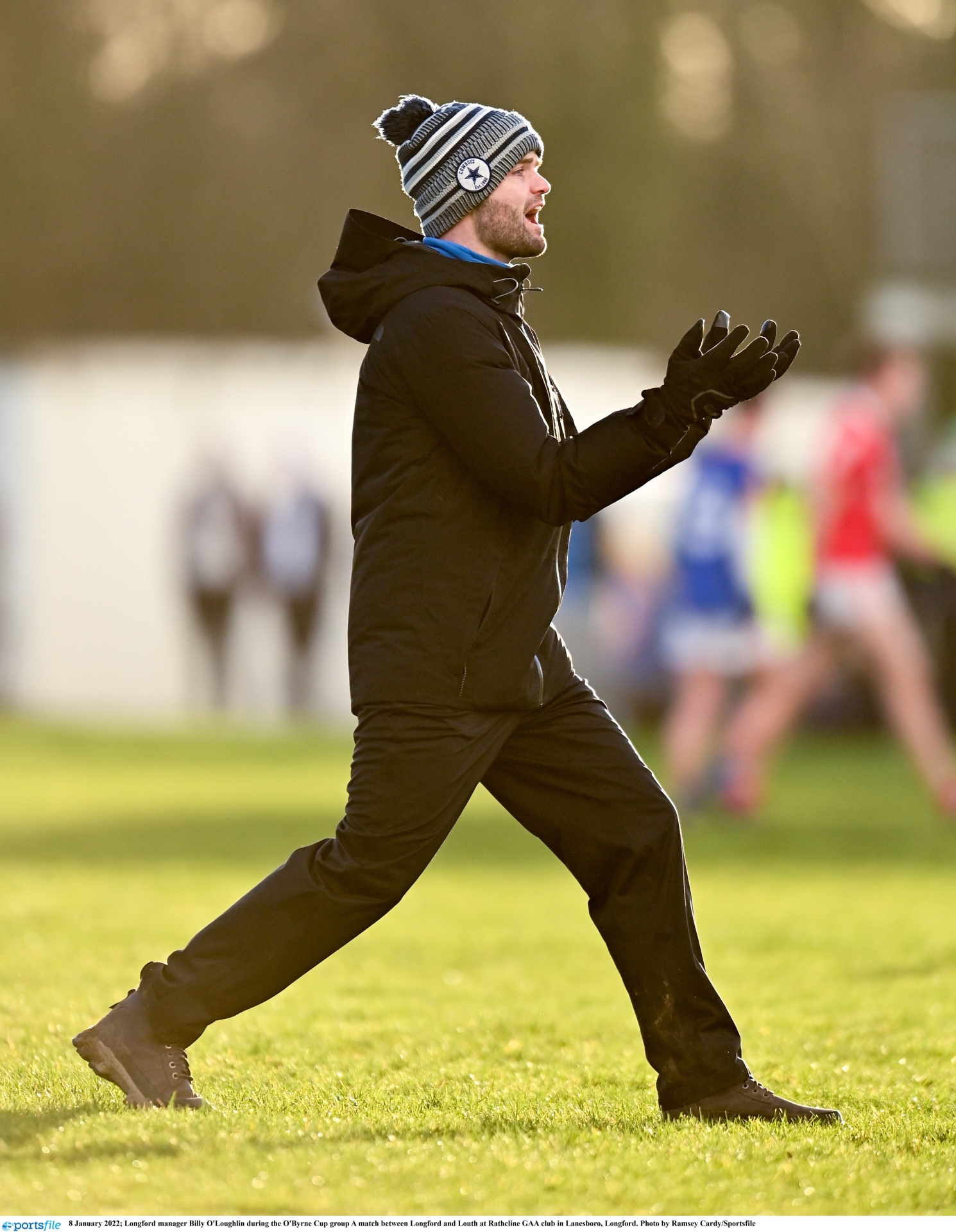 Longford manager Billy O'Loughlin during the O'Byrne Cup group A match between Longford and Louth at Rathcline GAA club in Lanesboro, Longford. Photo by Ramsey Cardy/Sportsfile