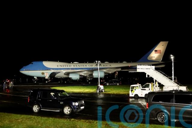 He was greeted by British Prime Minister Rishi Sunak after Air Force One landed at RAF Aldergrove on Tuesday night.