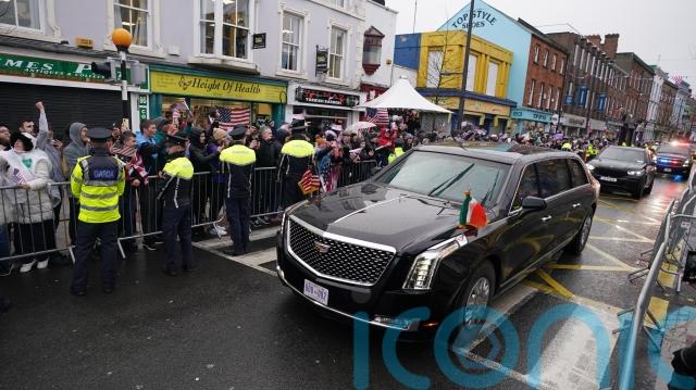 Tanaiste Micheal Martin and former Irish rugby player Rob Kearney joined the US president for the Dundalk visit.