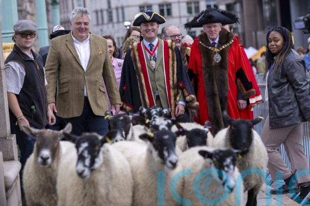 As a Freeman of the City of London, Corrigan has an ancient right to lead the sheep over the River Thames.