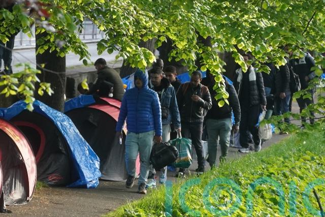 The asylum seekers who had been living in the makeshift encampment were told it was an offence to stay on the canal and that they would be taken by bus to official accommodation.
