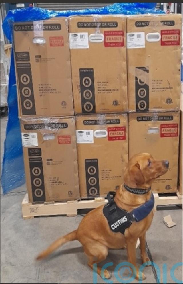 Detector dog Meabh helped Revenue officers uncover 154kg of herbal cannabis, worth 3,080,000 euro, which was in vacuum-packed packages in the boxes.