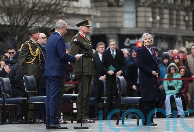 The commemoration was also attended by Taoiseach Micheal Martin, Tanaiste Simon Harris, Defence Minister Helen McEntee, Lord Mayor of Dublin Ray McAdam, Northern Ireland First Minister Michelle O’Neill and Sinn Fein leader Mary Lou McDonald.