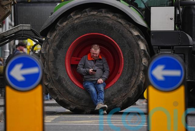 Around two dozen protesters stood on O’Connell Bridge on Wednesday morning as a handful of tractors remained parked on O’Connell Street overnight.