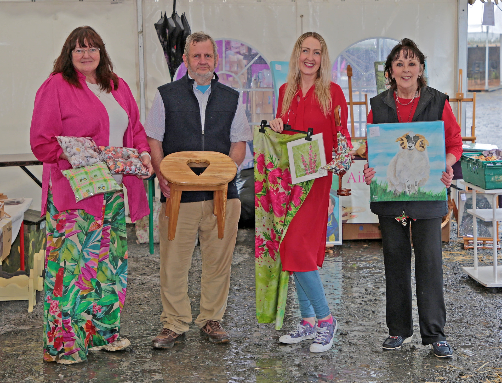 Caption: Caroline Slevin (Just Need That), John Rogers (Woodcraft), Shelley Corcoran (Tabitha & Norah) and Áine Doohan (Áine's Art) at the Irish Native Rare Breed Livestock Show in Ballymahon