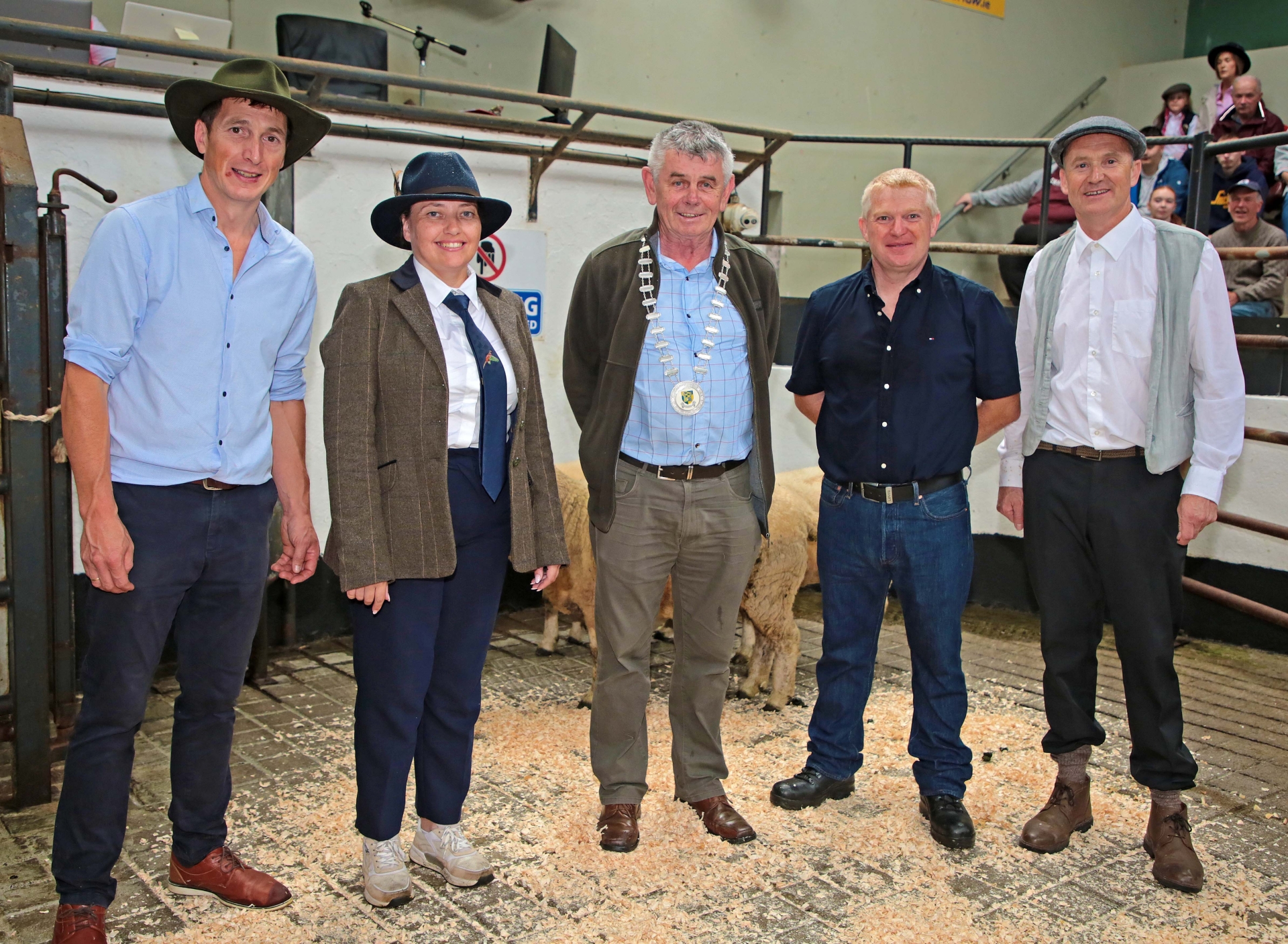 Caption: William Jones (Ballymahon Mart Manager), Patricia Carrig Brady, Ballymahon Municipal District Cathaoirleach Cllr Martin Skelly, Herbert Farrell and John O'Hanlon IFA at the opening of Saturday's Irish Native Rare Breed Livestock Show organised as part of National Heritage Week by Longford / Westmeath Farmers Mart in partnership with the Irish Native Rare Breed Society
