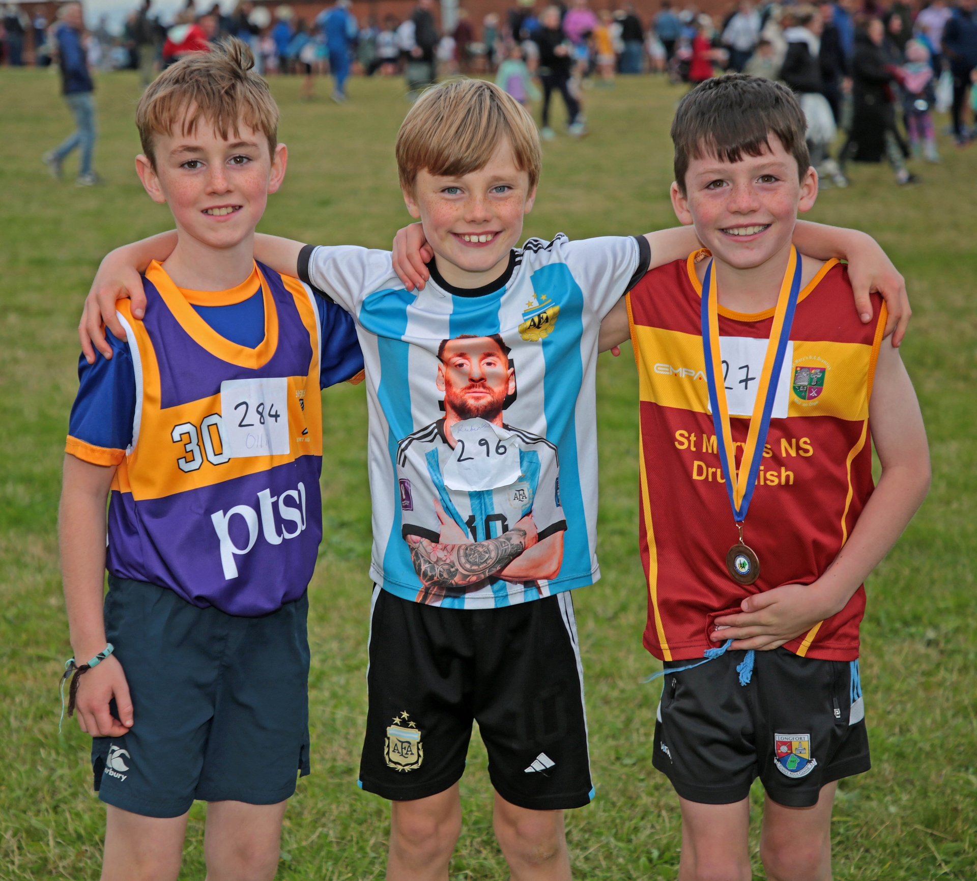 Caption: 3rd and 4th Class Boys Race; Ruben Kelleher, Ollie Finn, John Kane, Drumlish NS