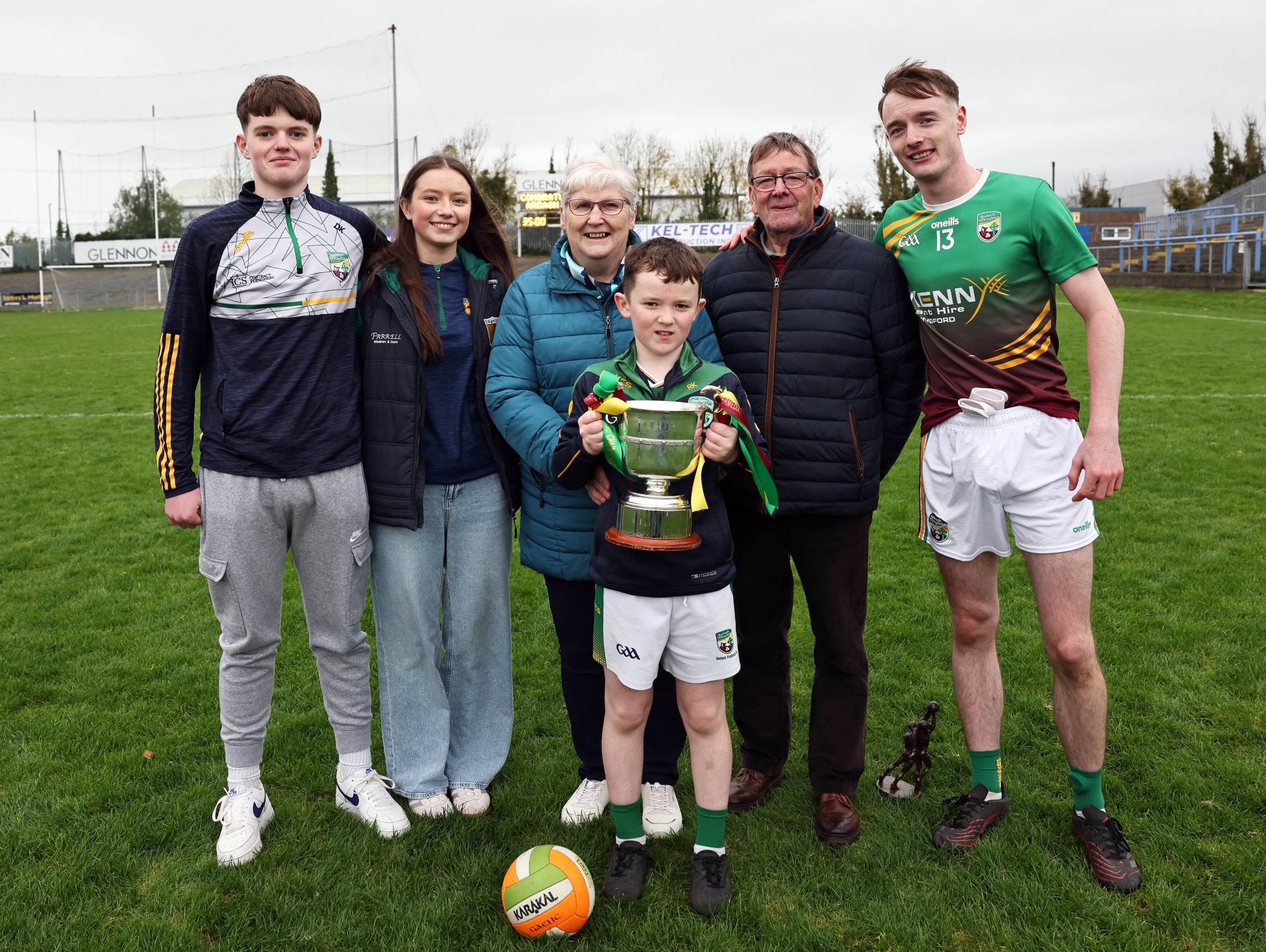Caption: Imelda & Billy Keenan with some of their grandchildren including player of the match Dylan Coady Picture: Syl Healy