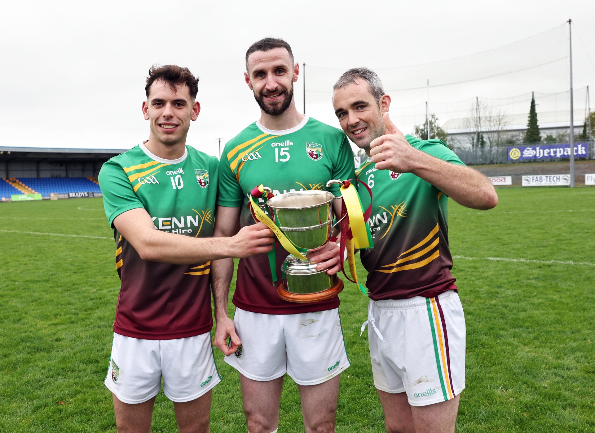 Caption: Farrell cousins Diarmuid, Killian & Gerard with the Hennessy Cup. Picture: Syl Healy