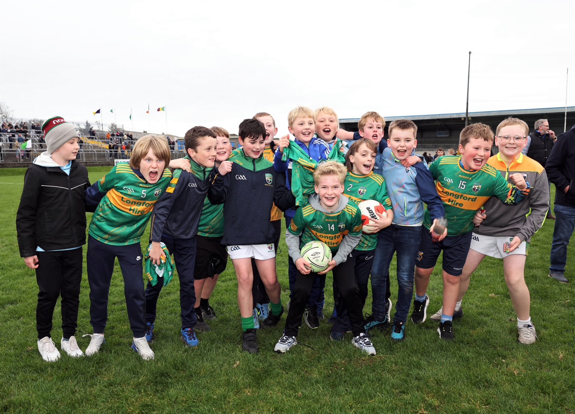 Caption: Young Ardagh Moydow supporters full of cheer and excitement after their team defeated St Brigid's Killashee in the Longford Intermediate Football Championship Final last Sunday in Glennon Brothers Pearse Park Picture: Syl Healy