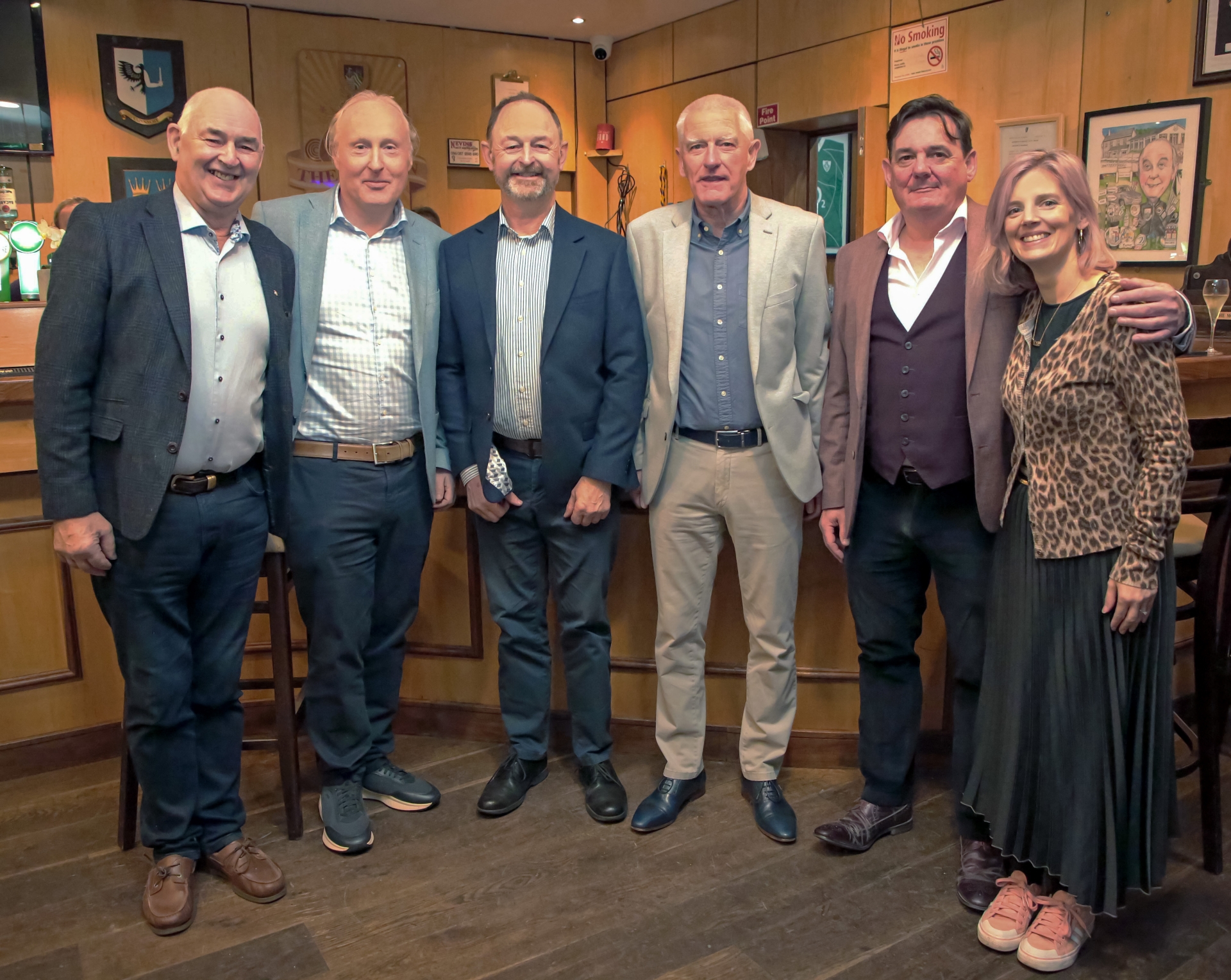 Caption: Mike Magan, Padraic O'Kane, Dan Magan, Tony Headon, Damian Sheridan, Rachel Lavalette