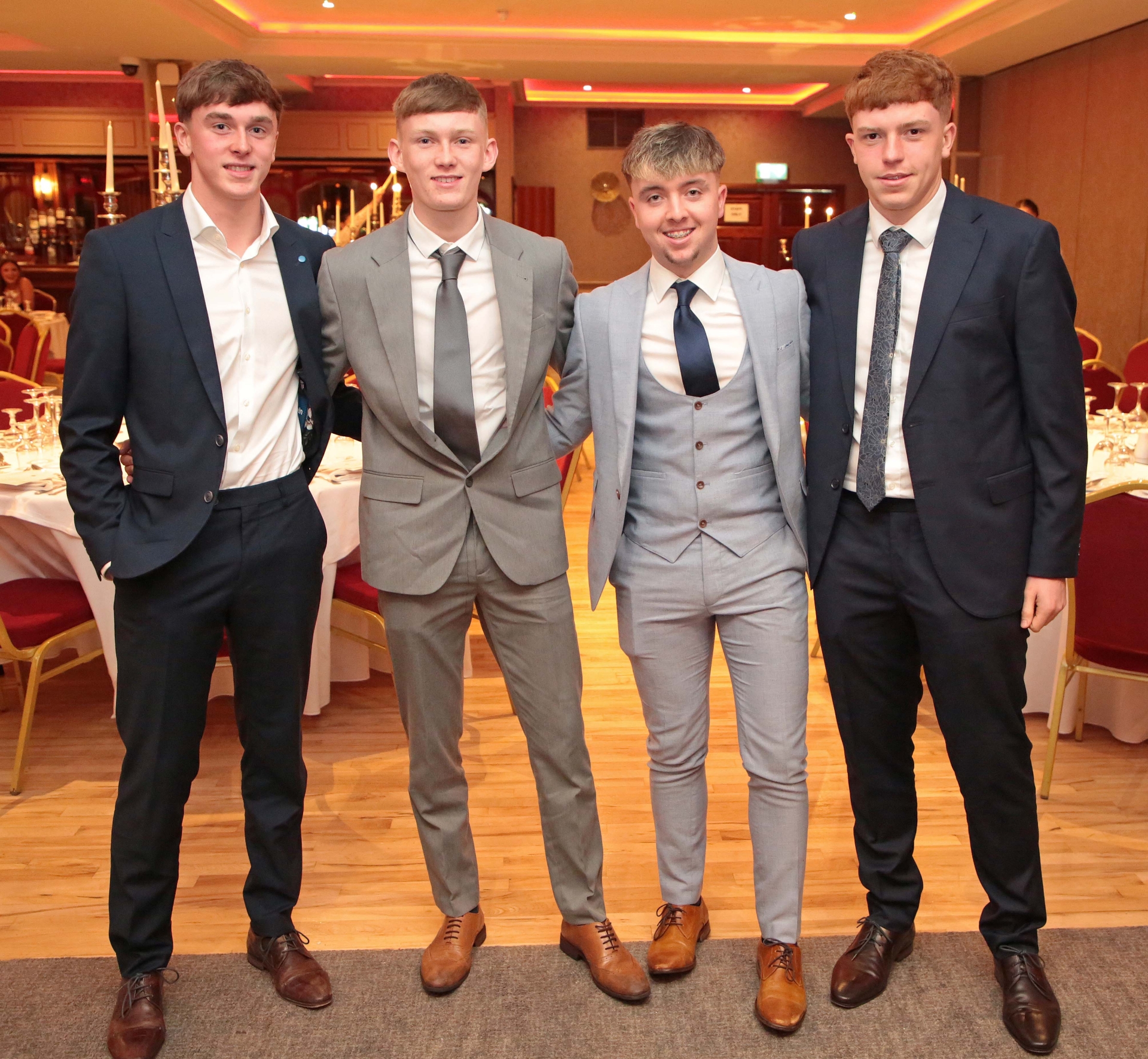 CAPTION: Dylan Dennehy, Sam Byrne, John Timlin and Ciaran Cummins looking very dapper and smart at the Longford Town FC dinner dance and end of season awards in the Longford Arms Hotel Picture: Shelley Corcoran