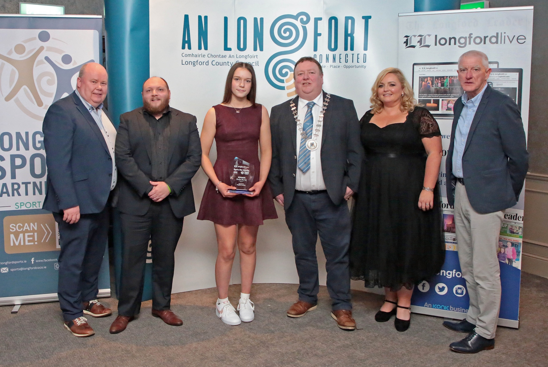 CAPTION: Longford Leader Managing Editor Alan Walsh, Samuel Byrne (sponsor Longford Centre), Evelyn Murray (Equestrian award winner), Cllr Niall Gannon, Tess Gillen and Tony Headon Picture: Shelley Corcoran