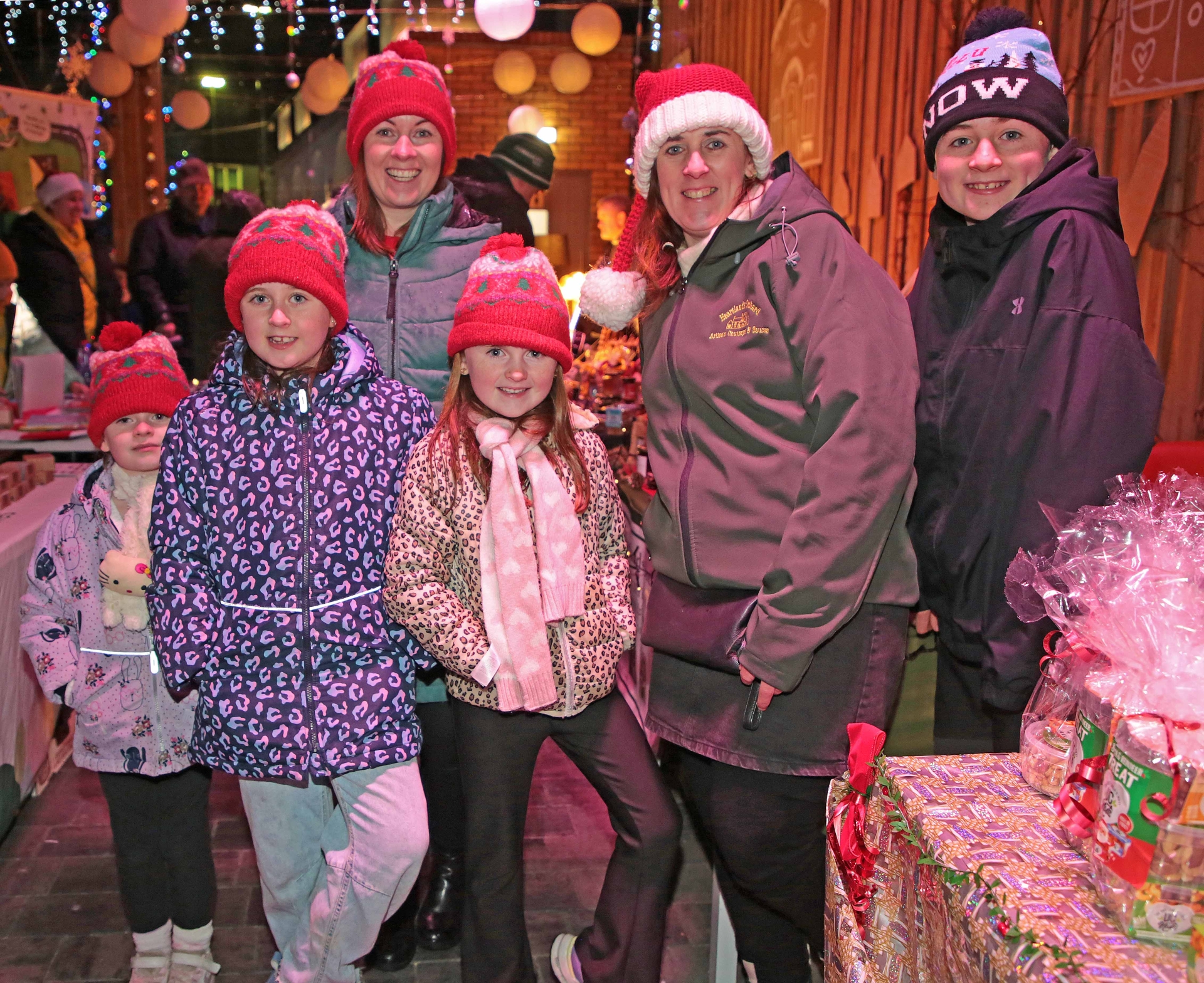 Caption: Louise, Lily-Mae and Katelyn Smith, Sophie, Niamh and Paul Parkes