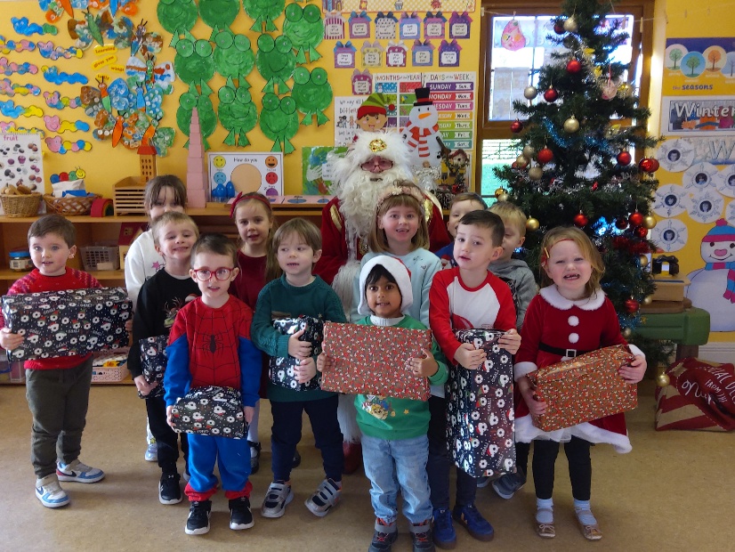 The children at Longford Montessori Centre had a very exciting day on Friday, December 19. First Santa came to visit and then John Moran and John Fitzpatrick from Melview football club popped in with club hats and treats for all the boys and girls.