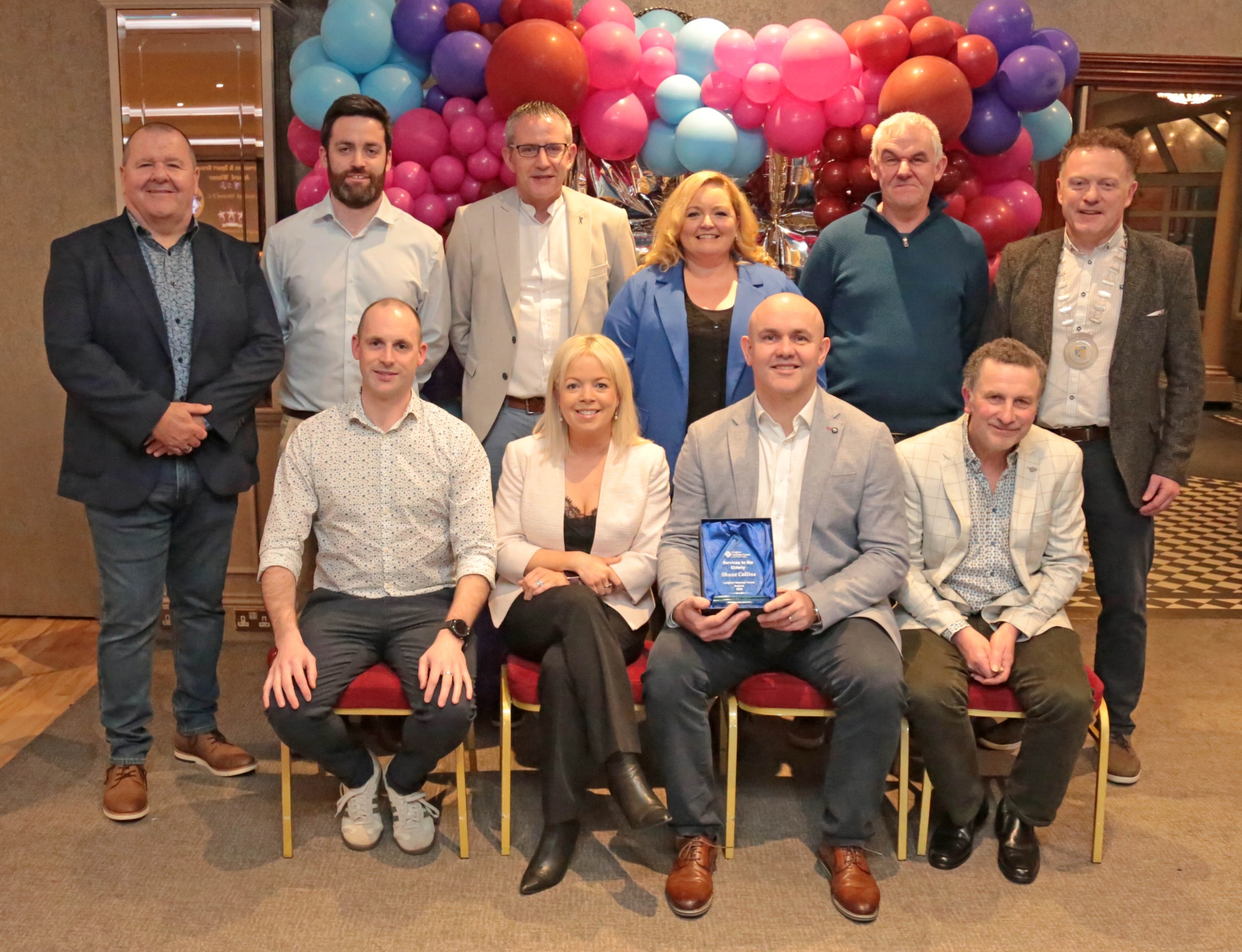 Caption: Cllr Gary Murtagh, Gerry Smyth, with Ardagh UTD FC