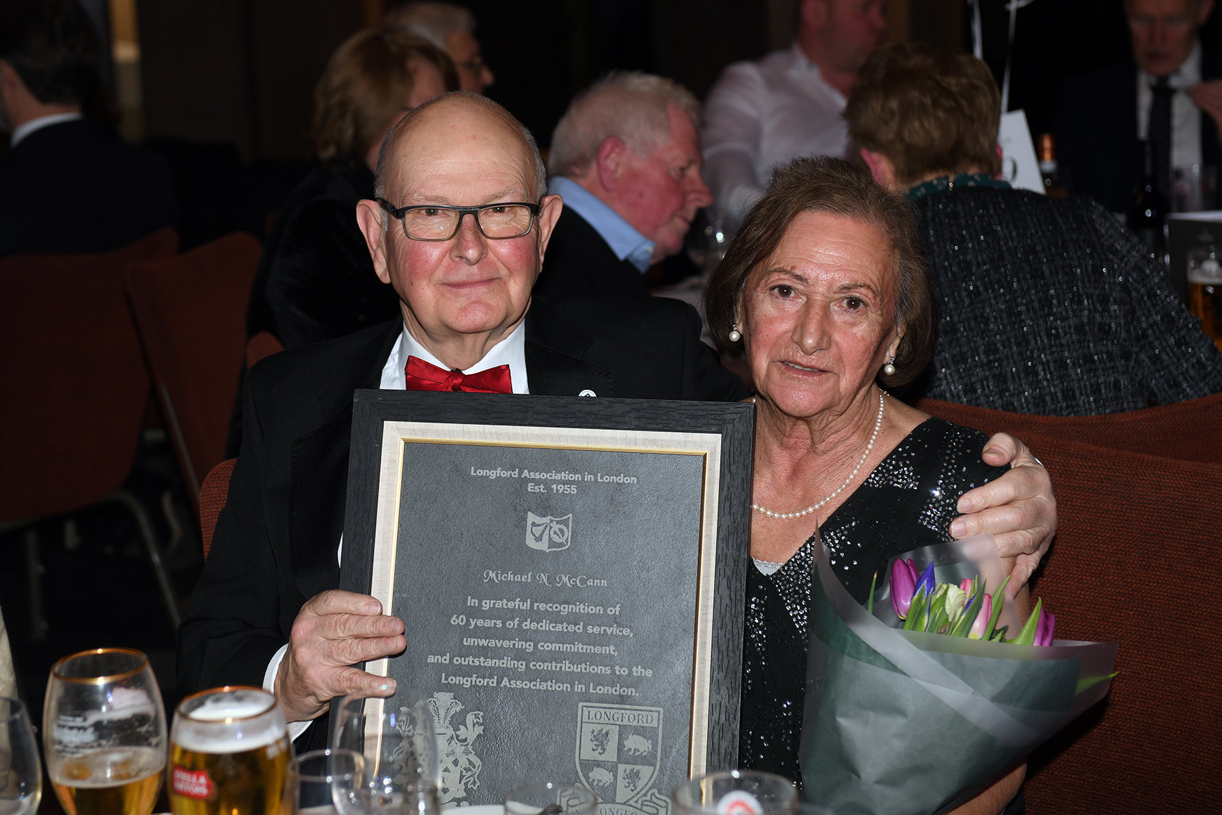 Caption: Longford Association in London Life President Michael McCann (Newtownforbes) and his wife Toni. Michael received a special presentation in recognition of his 60 years of dedicated service, unwavering commitment and outstanding contribution to the Longford Association in London Picture: Malcolm McNally