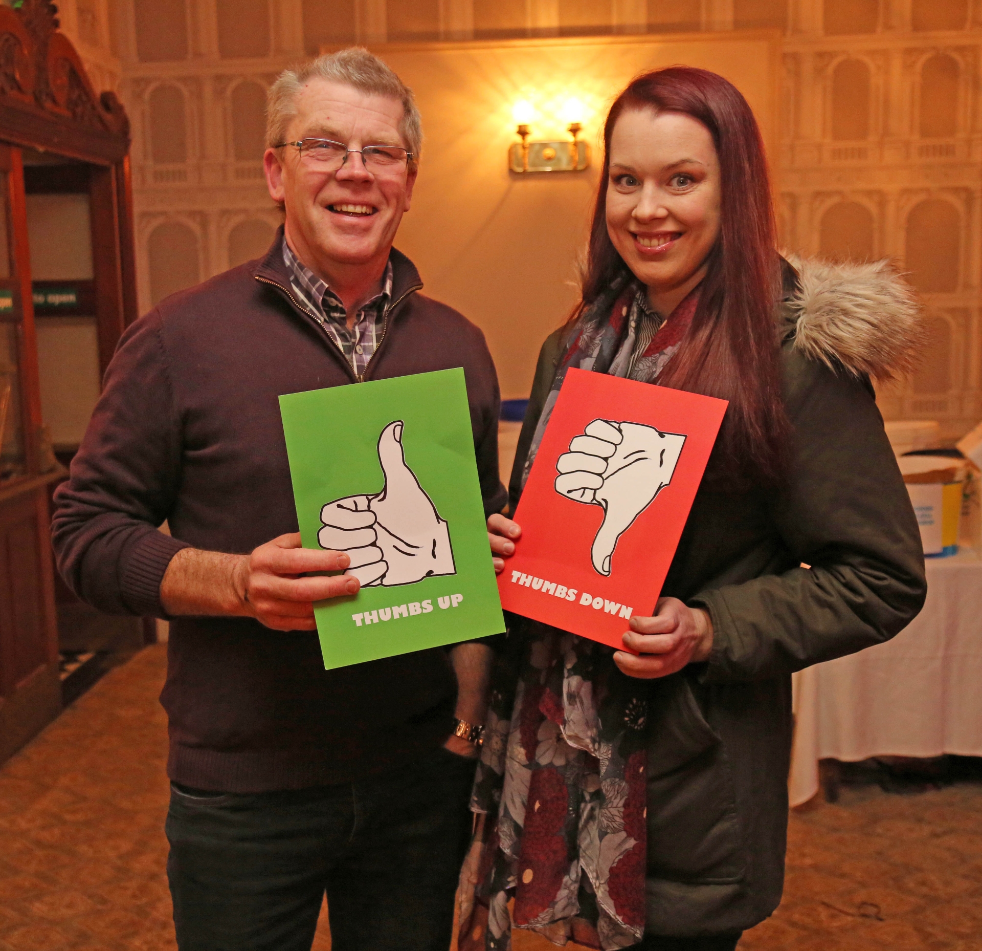 Caption: Will it be a thumbs up or a thumbs down? Peter and Mareerosa Maguire at Take Me Out