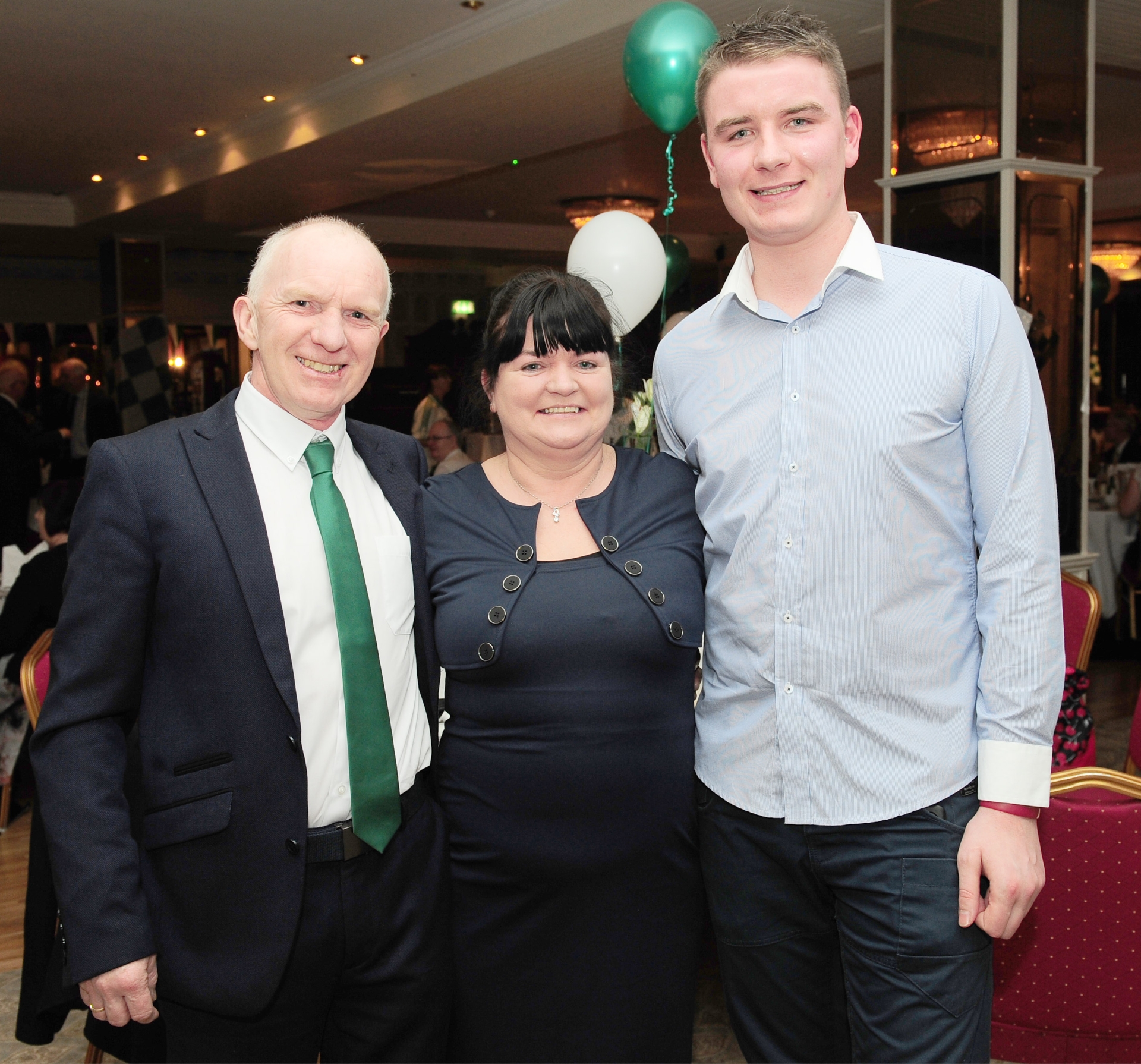 Caption: Brendan and Marie Cosgrove with Stephen Hussey at the St Brigid's Killashee presentation dinner dance