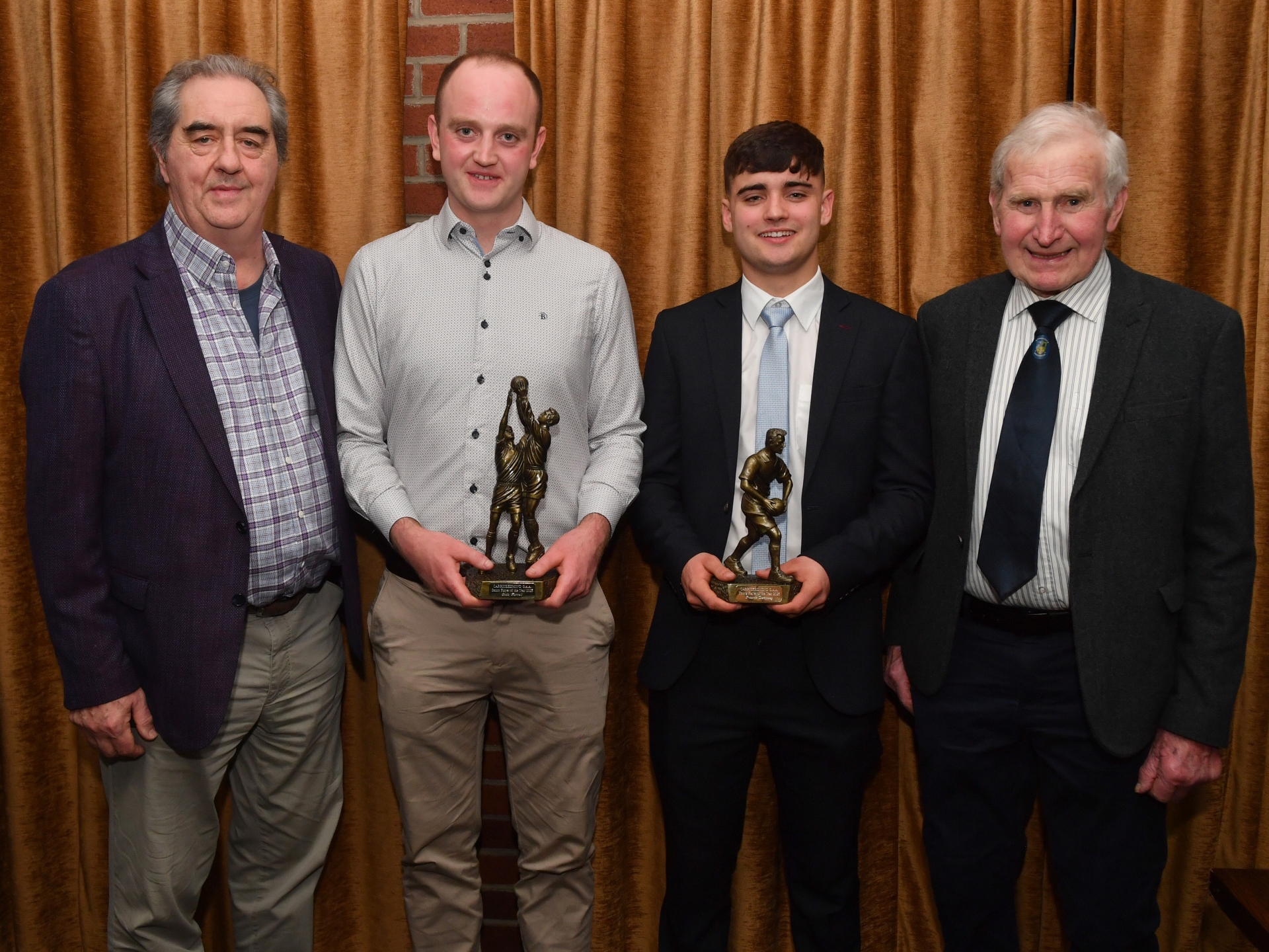 Caption: Eamonn Brennan (Leinster Council delegate), Enda Farrell (Senior player of the year), Pauric Dempsey (Young player of the Year) and Eugene Quaine (Assistant Treasurer Longford GAA County Board)