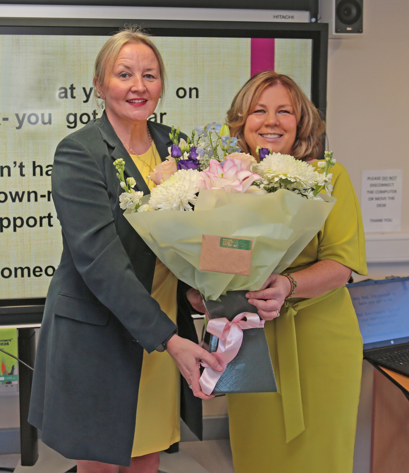 Caption: Longford Women's Link CEO Tara Farrell makes a presentation to Network Ireland Roscommon and former LWL Chairperson Stephanie Igoe who addressed the gathering at the International Women's Day Coffee Morning in LWL Picture: Shelley Corcoran