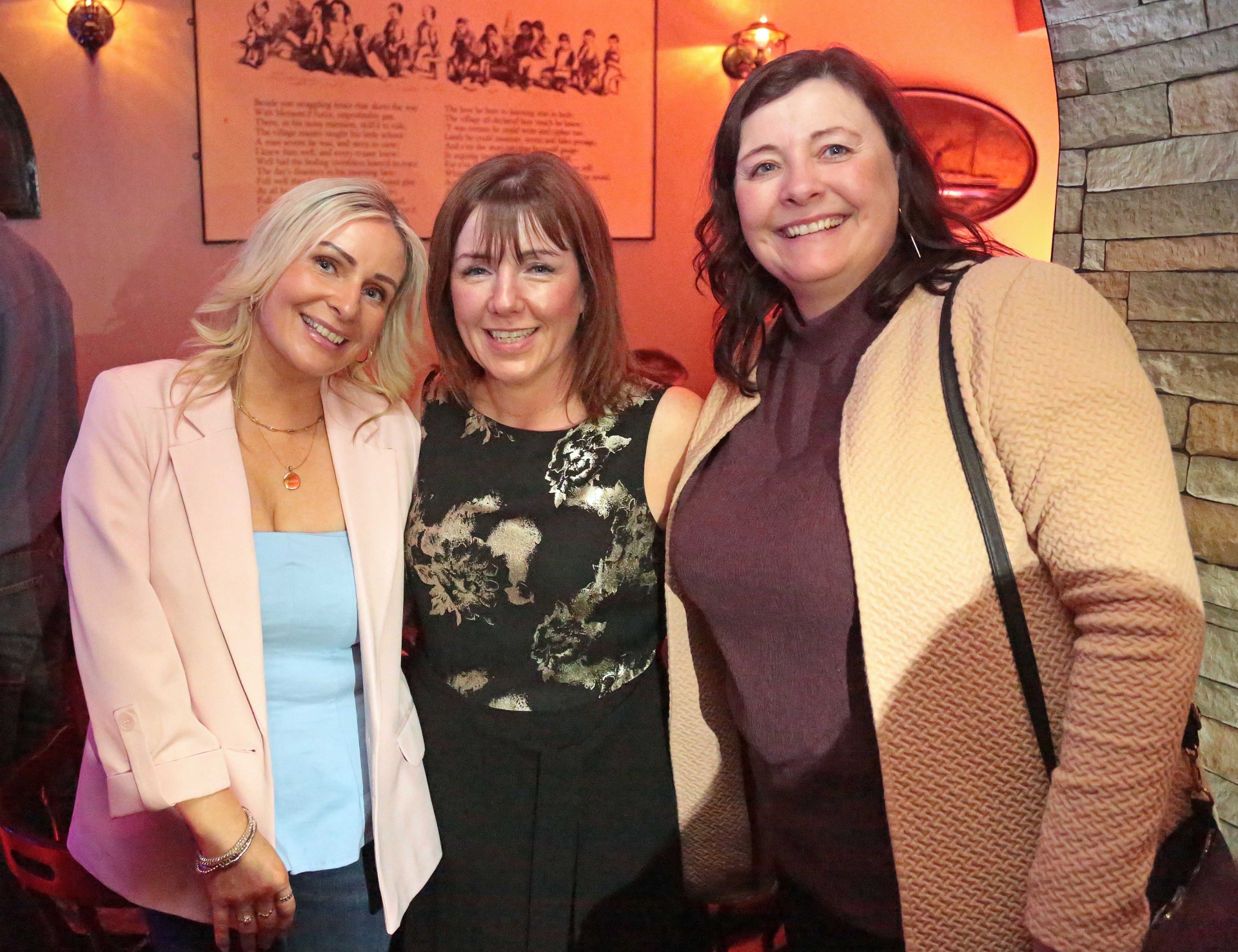 Caption: Denise Keenan with Fidelma and Linda Flood at The Goldsmith Inn on Sunday night where 'The Afters' performed on stage