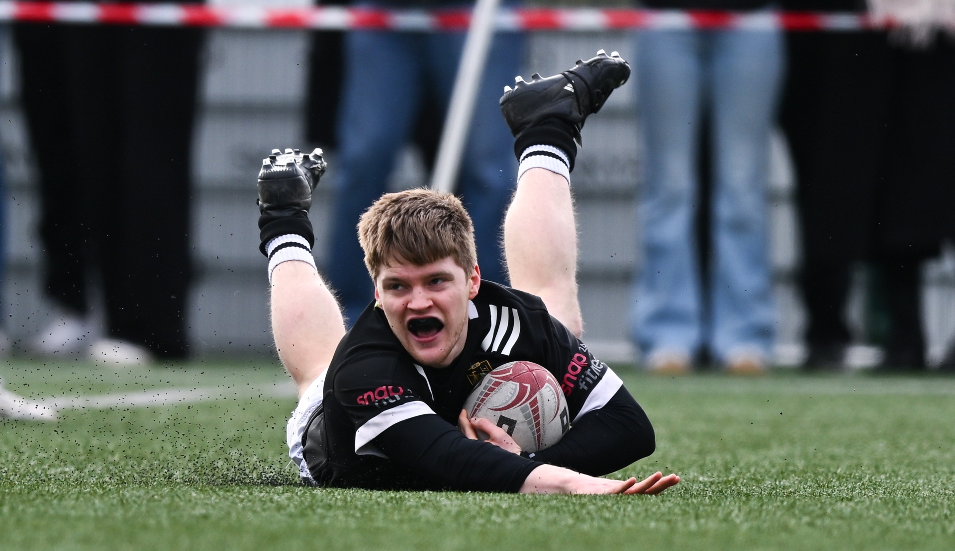 Caption: David Connolly of Longford RFC dives over to score his side's fourth try during the Bank of Ireland Provincial Towns Cup Round 2 match between Longford RFC and Mullingar at Precision Health Park in Longford. Photo by Tyler Miller/Sportsfile