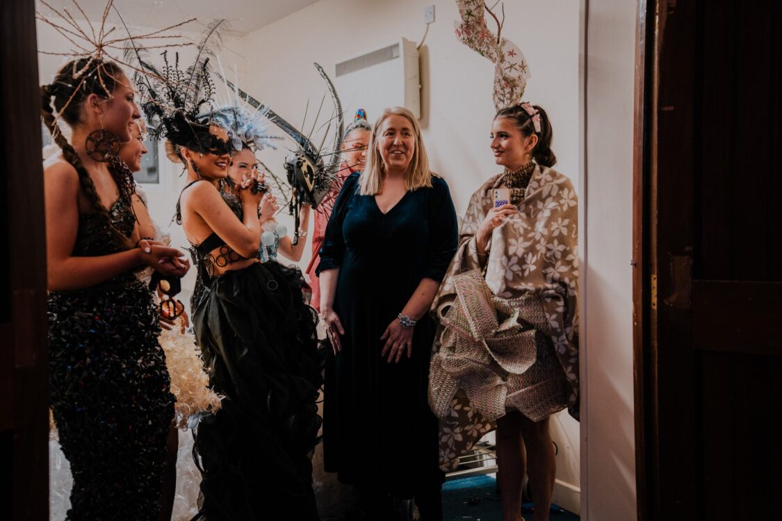 Caption: Charmaine Hetherton and the Cnoc Mhuire Junk Kouture team getting ready to walk the runway. Pic. Brian McCann