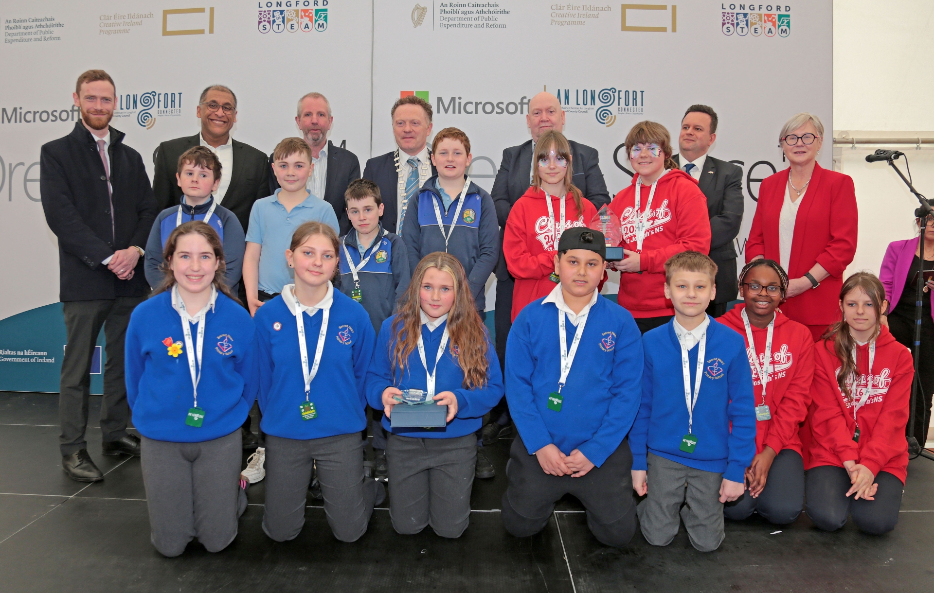 Caption: Most-Innovative Project Runners-up Scoil Bhríde Glen, Sacred Heart Granard and St Joseph's NS with Management
