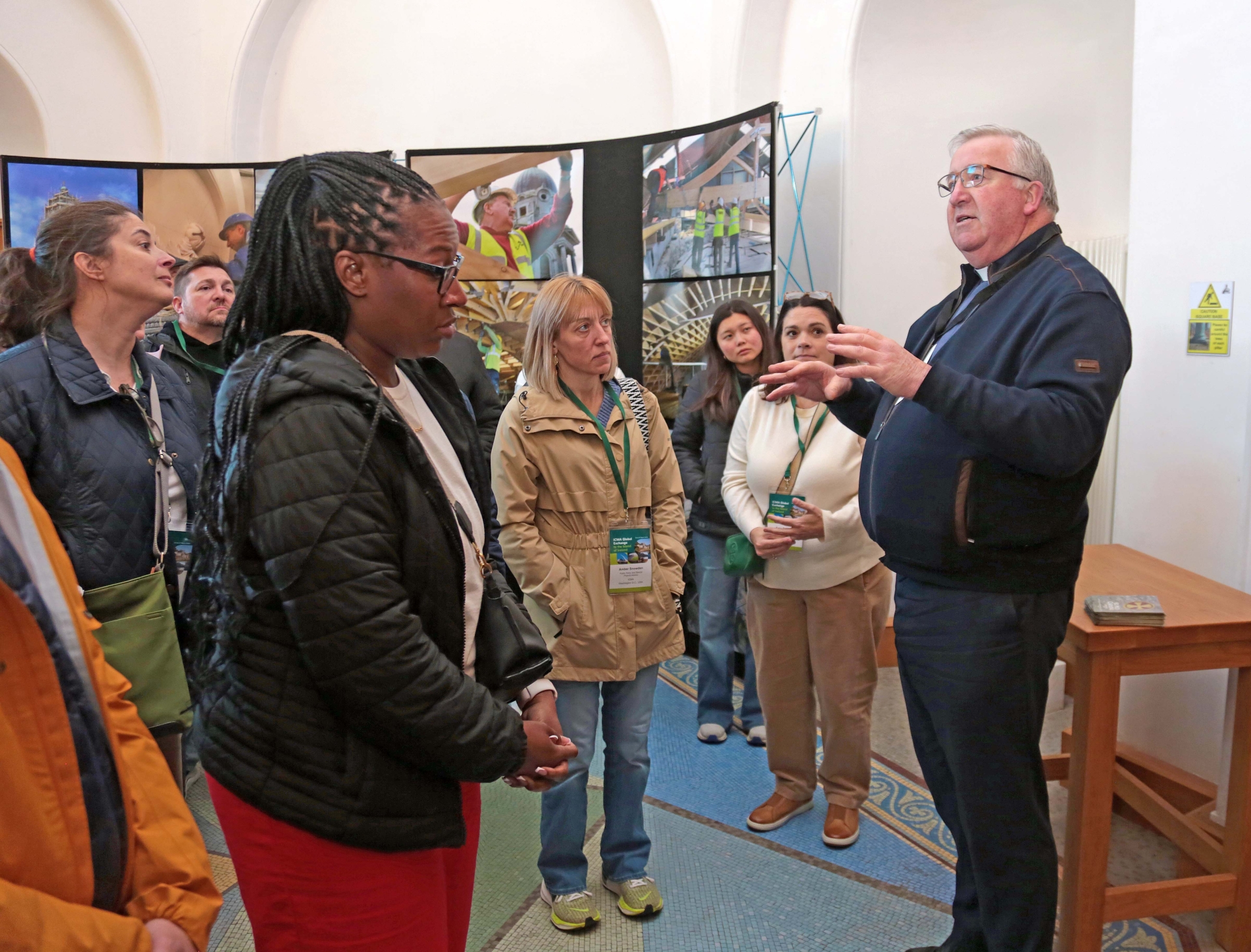 Caption: Longford Age Friendly Ambassador Eamon Brennan and Fr James MacKiernan give a guided tour of St Mel’s Cathedral to the ICMA delegates Picture: Shelley Corcoran