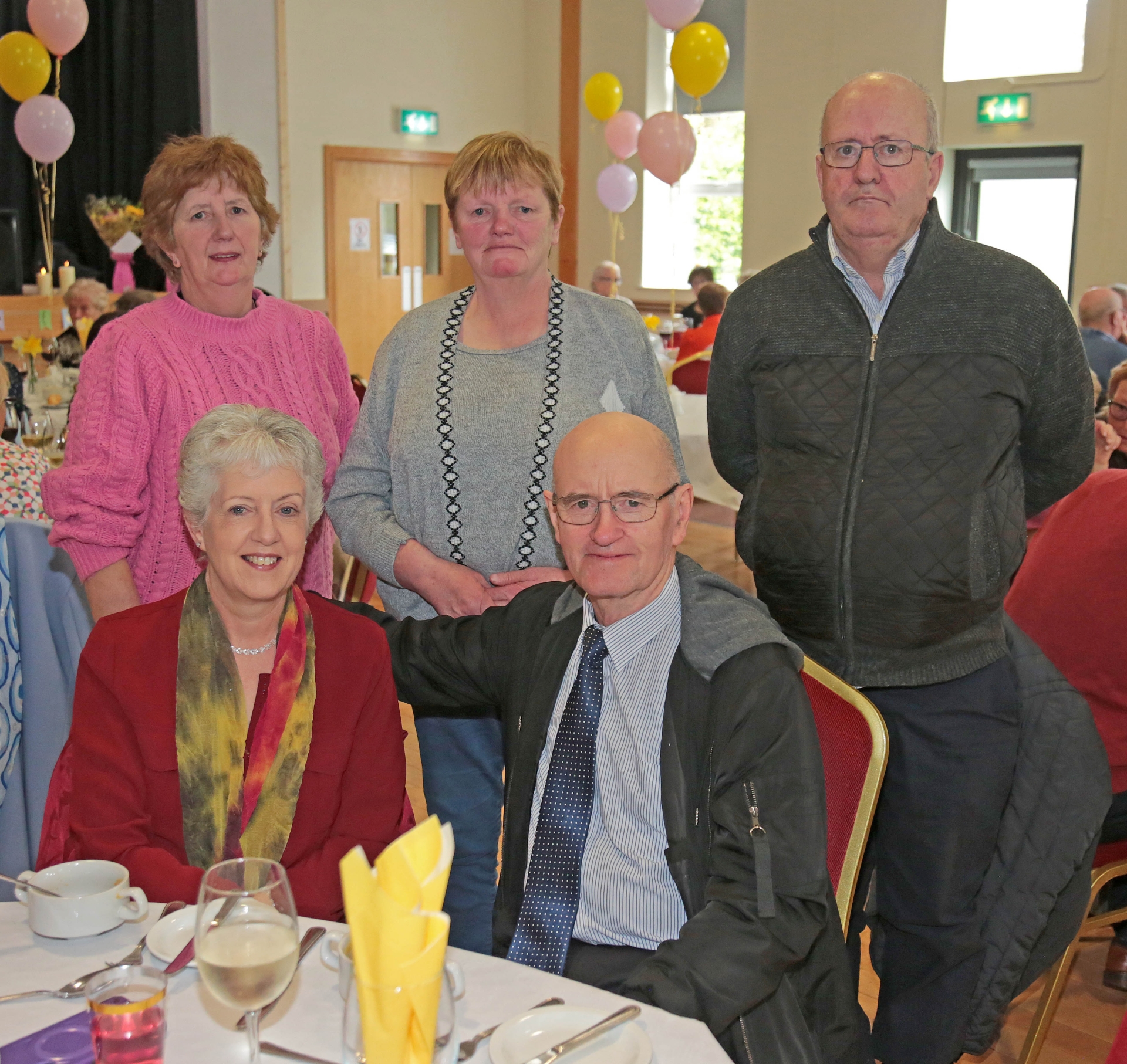 Caption: Maureen Reilly, Ann Brady, Farrell Brady, Mary Egan and Bert O'Malley enjoying the Abbeylara Senior Citizens Easter Party
