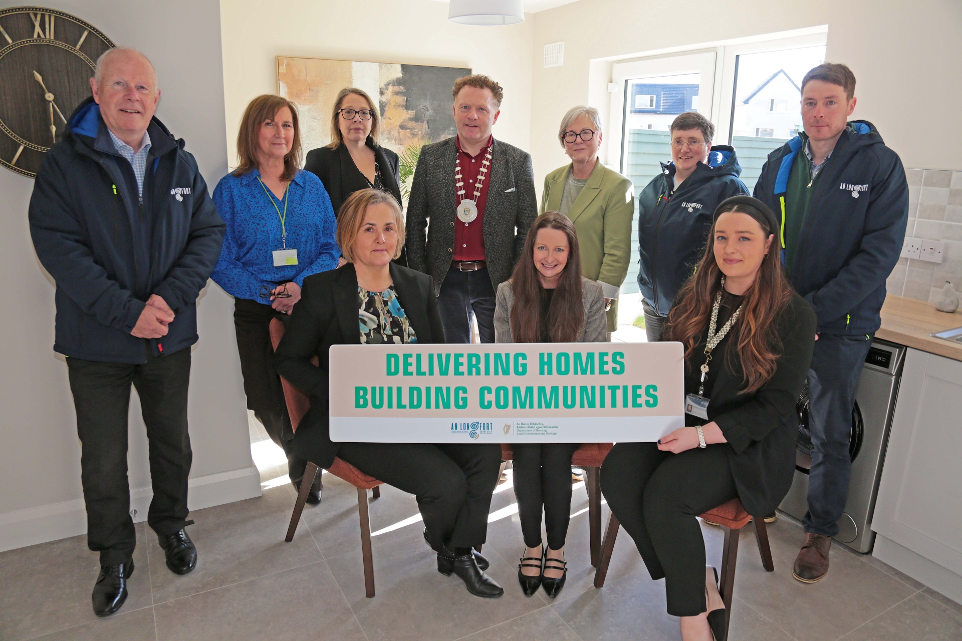 Caption: Cathaoirleach of Longford County Council Cllr Garry Murtagh pictured with members of the Housing Department staff and management of Longford County Council in one of the properties for sale through the Affordable Purchase Scheme with Longford County Council. Picture: Shelley Corcoran