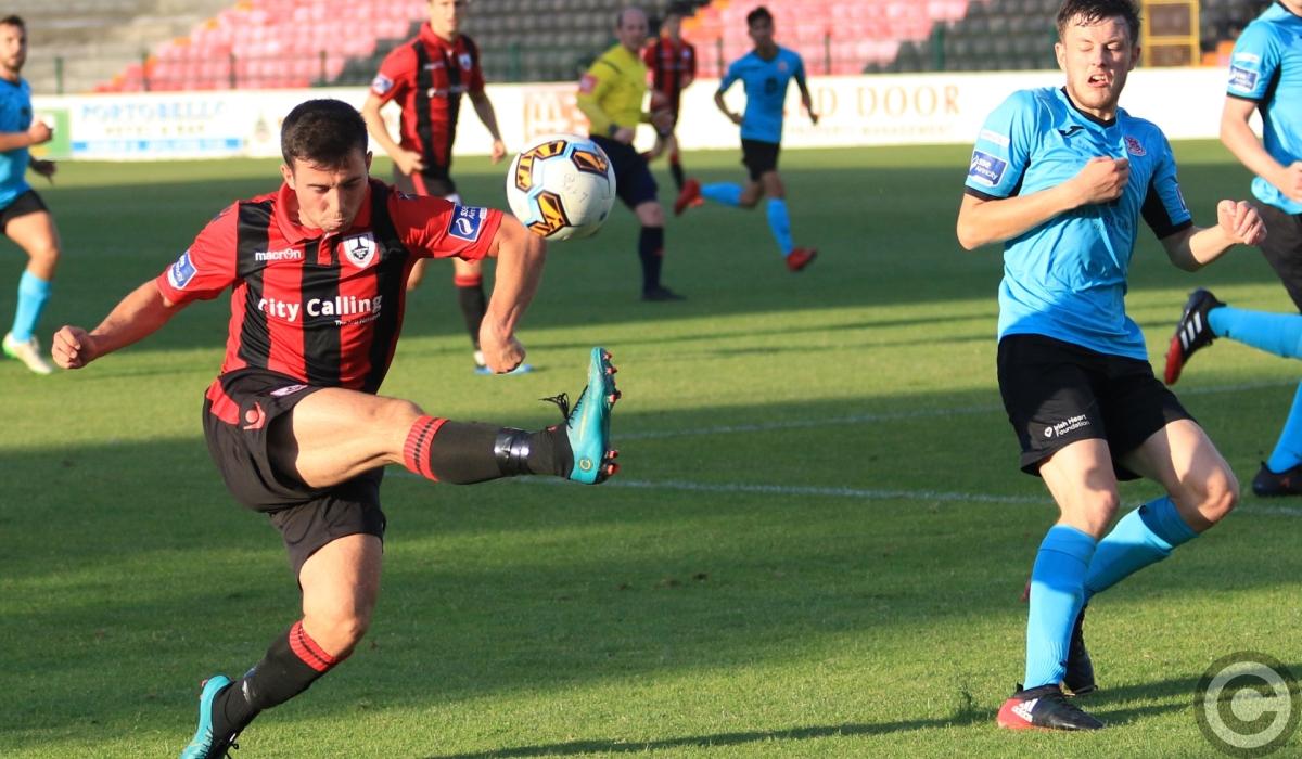 Totally against the run of play Cobh took the lead in the 49th minute when a free-kick from the left wing was headed home by Denzil Fernandez and Ramblers could have doubled their advantage in the 74th minute but Aodh Dervin cleared the ball off the line.