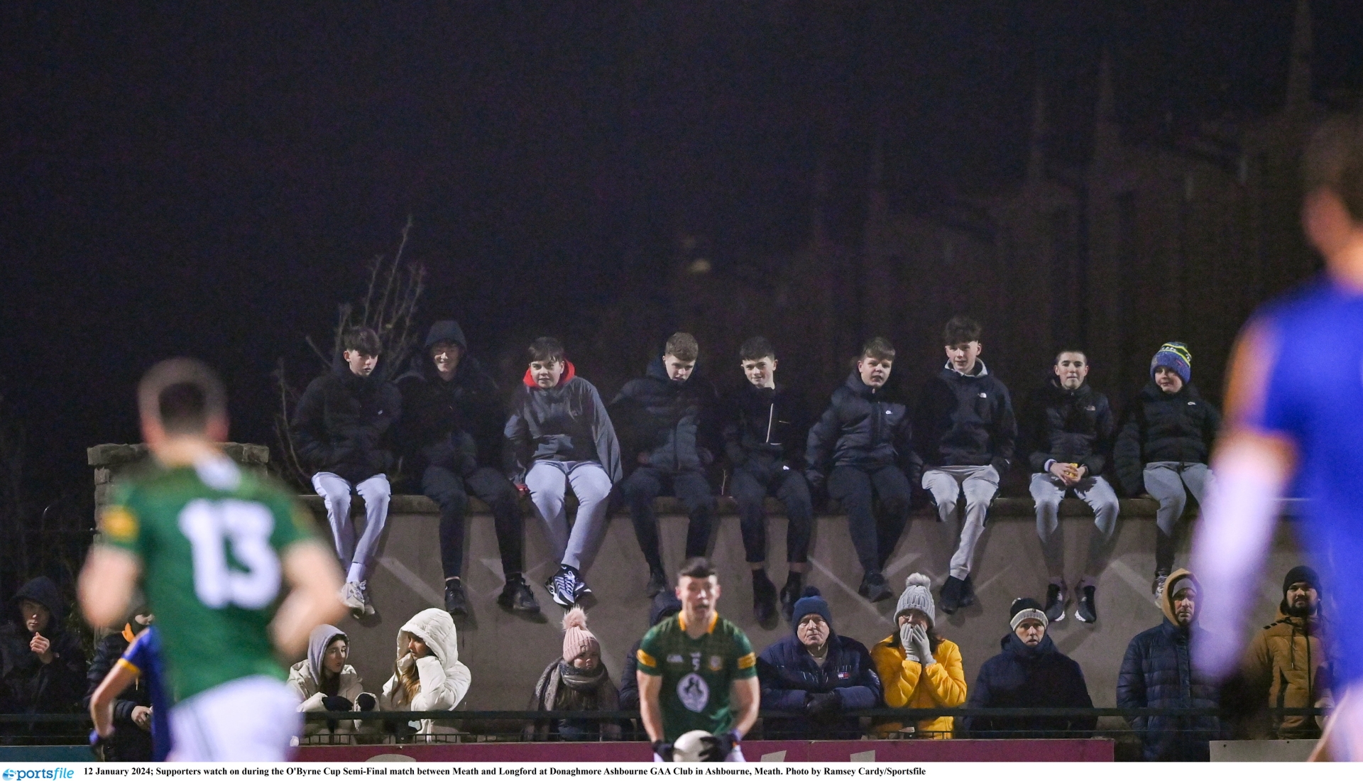 Caption: Supporters watch on during the O'Byrne Cup Semi-Final match between Meath and Longford at Donaghmore Ashbourne GAA Club in Ashbourne, Meath. Photo by Ramsey Cardy/Sportsfile