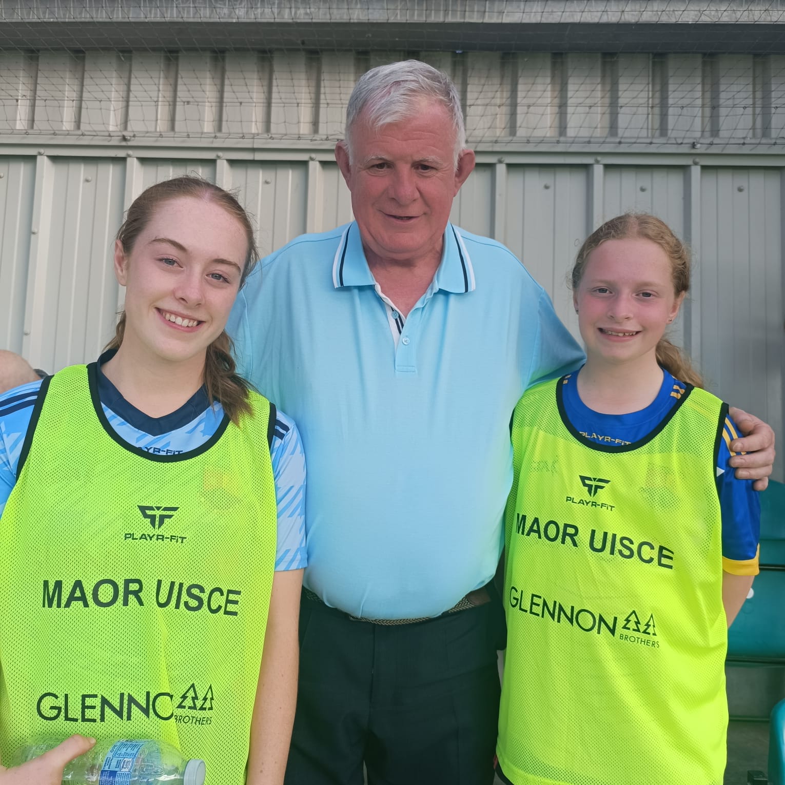 Caption: Edie and Caoimhe Hogan with their grand uncle Dan Keogh who is Chairperson of the Longford Association in London