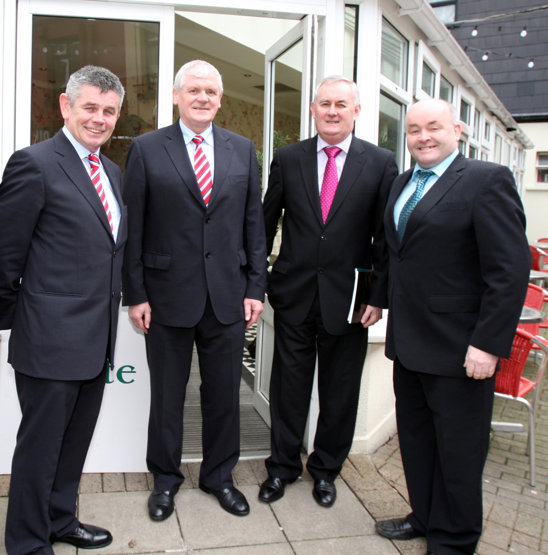 Picture: When Martin Skelly became the 32nd Leinster Council Chairperson in 2011, Convention was held in the Longford Arms Hotel. Martin is pictured here with Sheamus Howlin (Wexford, outgoing Leinster Council Chairperson), Christy Cooney (Cork, the then GAA President) and Pat Cahill (who was Longford GAA Chairperson at the time).