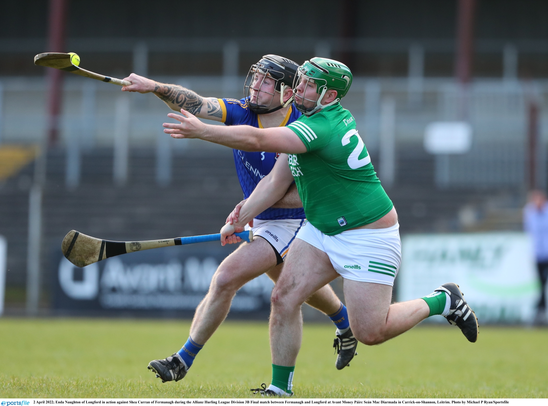 Caption: Enda Naughton of Longford in action against Shea Curran of Fermanagh during the Allianz Hurling League Division 3B Finalat Avant Money Páirc Seán Mac Diarmada Photo by Michael P Ryan/Sportsfile
