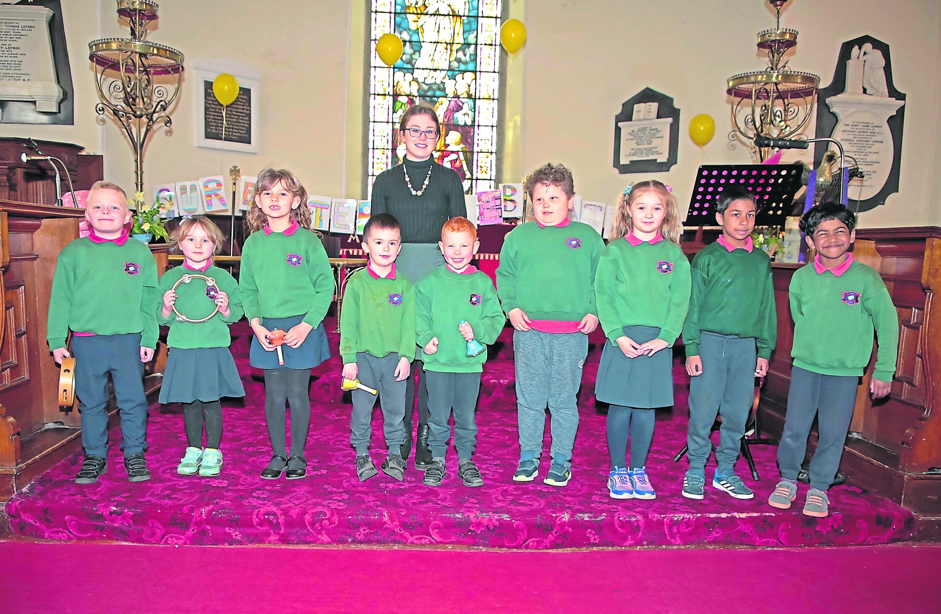 Niamh Columb with pupils from the Junior Room at St John's NS, Longford town