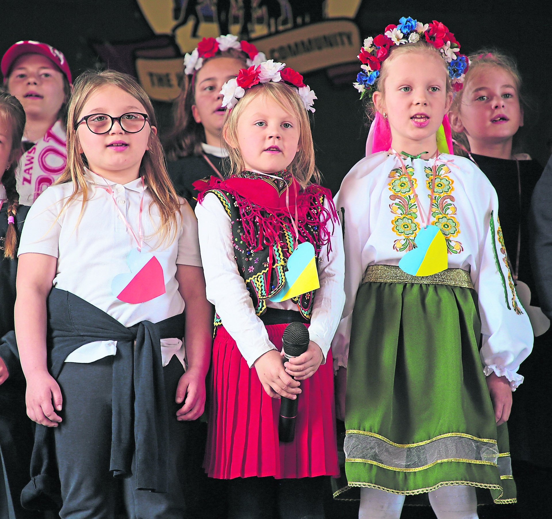 Weronika Figlak, Maja Romanowska and Sofia Ivashcysnyn welcoming the Polish Ambassador to St Joseph’s National School Pictures: Shelley Corcoran